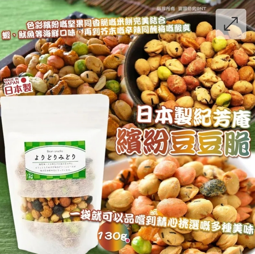 $68套2包。 2套或以上$58套, 日本製紀芳庵-繽紛豆豆脆(一套2包) ⛔截單日期:2025/12/23 06:00PM 📦預計貨到日:2月中 誕生於30年前嘅🤩紀芳庵繽紛豆豆脆😋 一直喺唔少🤫日本人嘅隱藏美味㊙️ 將花生米🥜裹上不同食材⚖️調配的米餅麵糊,🔥烘炸至酥脆💥 🌈繽紛色彩🟰豐富多樣美味😜 由熟悉的💗經典風味➡️鮮蝦、魷魚等海鮮風味➡️辛辣芥末味➡️酸爽醃梅風味 一袋輕鬆享受💟奢侈、極致、講究💟的多元滋味 ⚠️本產品含花生、小麥、蝦、大豆、魷魚、杏仁、芝麻、豬肉,過敏者慎用⚠️ ▪️重量:約130g/包,(一套2包) ▪️原產地:日本製造 ▪️有效期:生產日起120日 ▪️保存方法:在室溫下保存,避免陽光直射、高溫、潮濕的地方。 ==⚠️ 聲明 ⚠️== 1.本貨品為平行進口正貨。 2.所有帖文內容只作分享及參考用途。為免混淆視聽,所有商標或版權均屬有關商品品牌商標的持有人,敬請留意。 3.空運/海運有可能因各種不明因素影響而延誤到貨,所有貨品一經訂購後,如非廠家缺貨,不設取消/退貨/換貨。 4.貨品在運輸途中導致產品包裝外盒有任何損毀凹陷,但不影響其產品本身食用/使用,或有機會不預設外盒出貨,我司不會作任何更換或退款。 5.以上資料及外盒包裝只供參考,商品外盒原廠有更換新包裝權利,一切以實物為準。 6.顏色或因拍攝器材或顯示螢幕等因素而與實物有異,以上圖片及文字僅供參考,一切以實物為準。