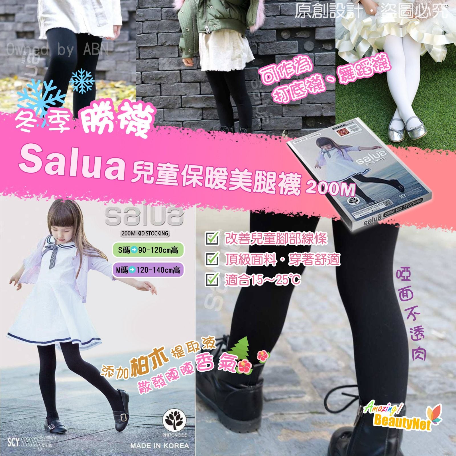 韓國Salua 兒童保暖美腿襪 200M (一套兩對)