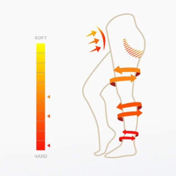 設計概念是從腳尖到上腹,以三段壓力🔩,將腿部線條保持在健康的型態。