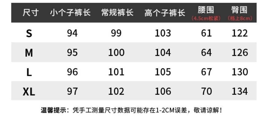$68條。2條起$60條, 🍂 秋冬文青感高腰闊腳褲|AUTUMN OOTD 必備款 一着即刻有氣質✨ 顯瘦、顯高、好行又好襯,秋冬衣櫃必收款~ ✨ 設計特色 👖 高腰設計,拉長腿部比例 🍃 闊腳剪裁,修飾大髀小腿線條 🎀 前中壓線+自然垂墜感,行路有型 ☁️ 柔軟布料,有挺度唔貼肉 1️⃣羔羊絨 2️⃣歐棉絨 🧵 鬆緊腰頭(約4.5cm鬆量),舒服唔勒 🎨 顏色選擇 深灰色(百搭顯瘦) 咖啡色(秋冬感滿分) 米白色(溫柔文青風) 👗 超易配搭 配針織外套/恤衫:返工返學都啱 配短上衣:比例即刻好靚 配平底鞋/短靴都好睇 📏 尺寸參考(cm) (設有 三種褲長選擇,照身高揀唔怕拖地👇) S 小個子褲長 94|常規 99|高個子 103 腰圍 61|臀圍 122 M 95|100|104 腰圍 64|臀圍 126 L 96|101|105 腰圍 67|臀圍 130 XL 97|102|106 腰圍 70|臀圍 134 🔔 溫馨提示:手工量度或有 1–2cm 誤差,屬正常情況 💡 適合場合 日常穿搭|返工|旅行|影相打卡