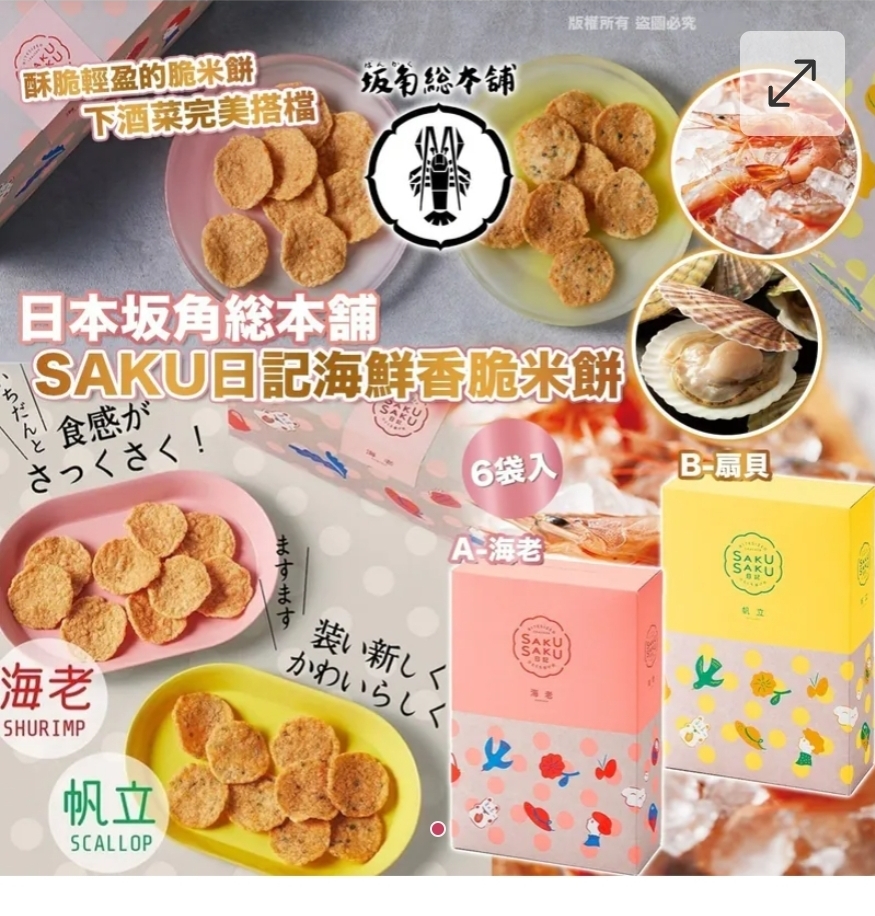 $68盒.2盒或以上$58盒.日本坂角総本舗-SAKU日記海鮮香脆米餅6袋入