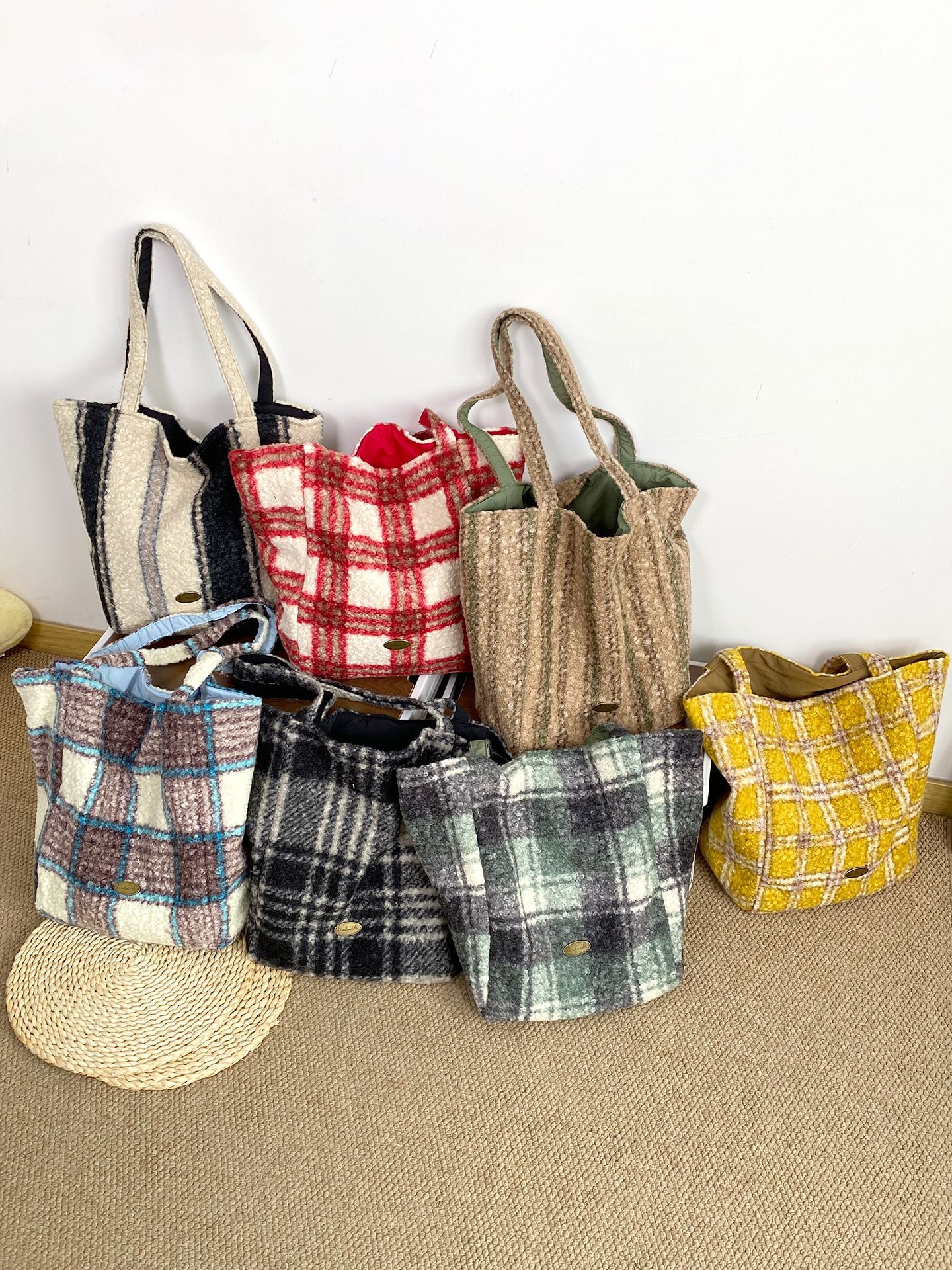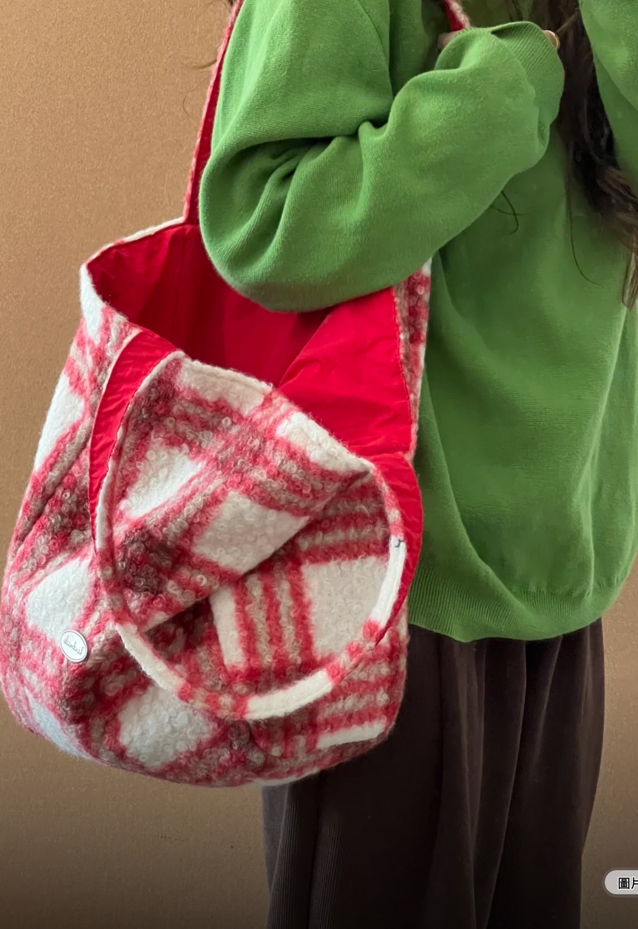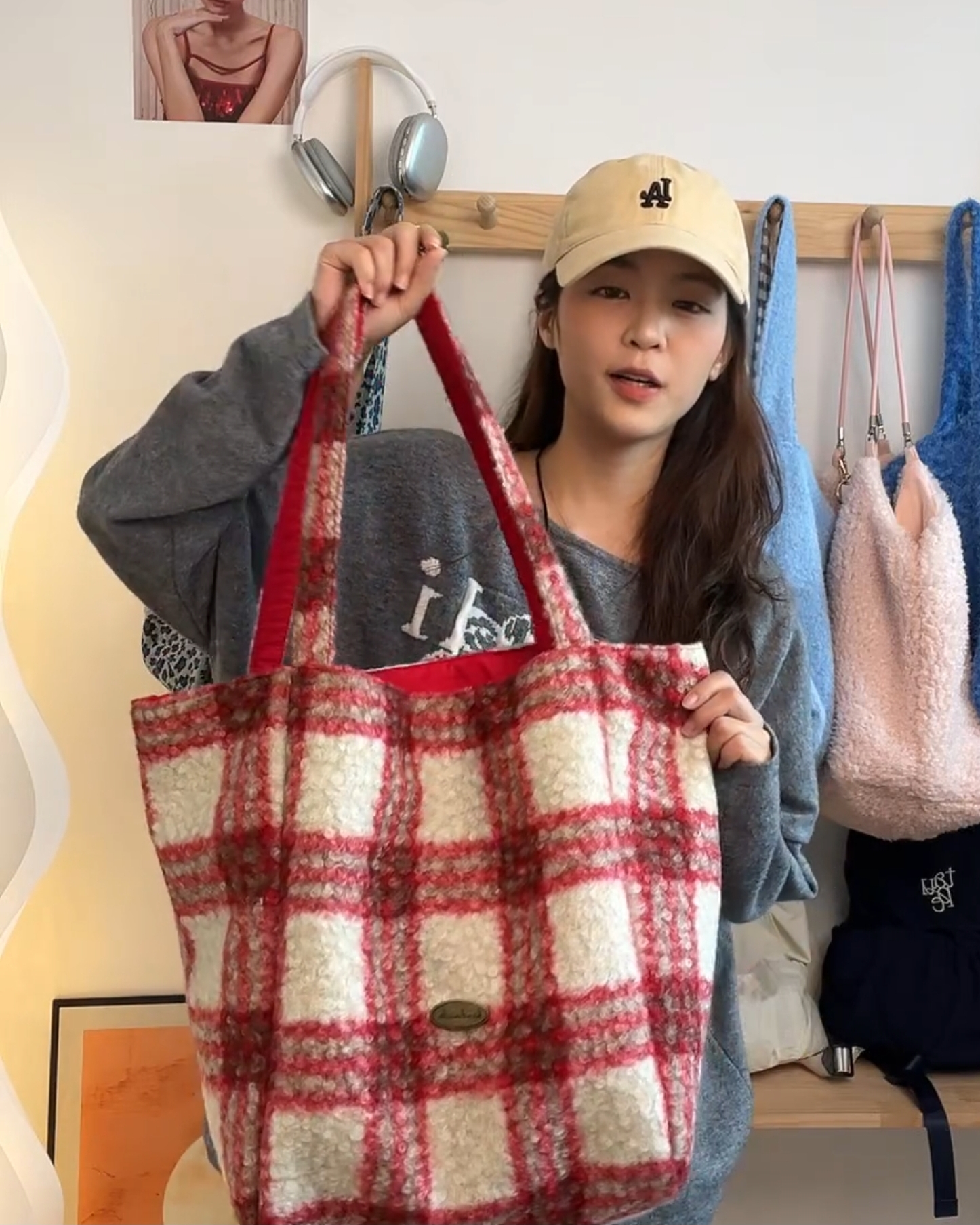 🍎冬天襯衫必備韓系毛絨Tote Bag~ 雙面用👜 今日想文靜 or Sporty 都ok! 容量超大 → Laptop / 水樽 / 化妝袋全部放晒入去! ❄️毛毛手感好舒服~揹上身即刻變韓劇女主😍 多色選擇。 $68隻。2隻起$60隻。 📣✨新款冬日暖笠笠絨面大Tote Bag|雙面用款!✨📣 超大容量 + 超舒服布料 + 兩面可用 = 必入手款🔥 --- 🧵 產品特色(賣點) ❤️ 冬天必備保暖面料|毛絨絨手感好、軟熟唔刺膚 🔁 雙面使用設計: ➤ 一面格仔絨面風(韓系小清新) ➤ 一面紅色棉布(休閒Sporty風) 👜 超大容量:Laptop / A4 文件 / 水樽 / 化妝袋都放到 🚪 可摺可收納|旅行 / 上班 / 買餸都啱 🧥 穿大衣 / Hoodie 一齊襯超好睇! 💪 肩帶夠長 → 肩揹都唔會頂腋下 --- 📏 尺寸 Size(圖中示例) 位置 尺寸 高度 37cm 上闊 48cm 下闊 28cm 底部深度 20cm 手挽高度 約29.5cm|可肩揹 ✔ 📌 大概可放: Laptop 14吋|iPad Pro|水樽|外套|日常用品 --- 🔄 雙面可用 · 2種風格一次擁有 面 風格 適合場合 格仔絨面 韓系暖冬感 學校 / Cafe / 出街 紅色布面 Sporty casual 健身 / 超市 / 旅行