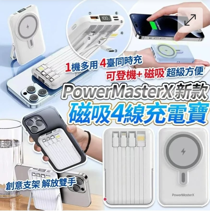 PowerMasterX 新款CE認証可登機磁吸+4線充電寶