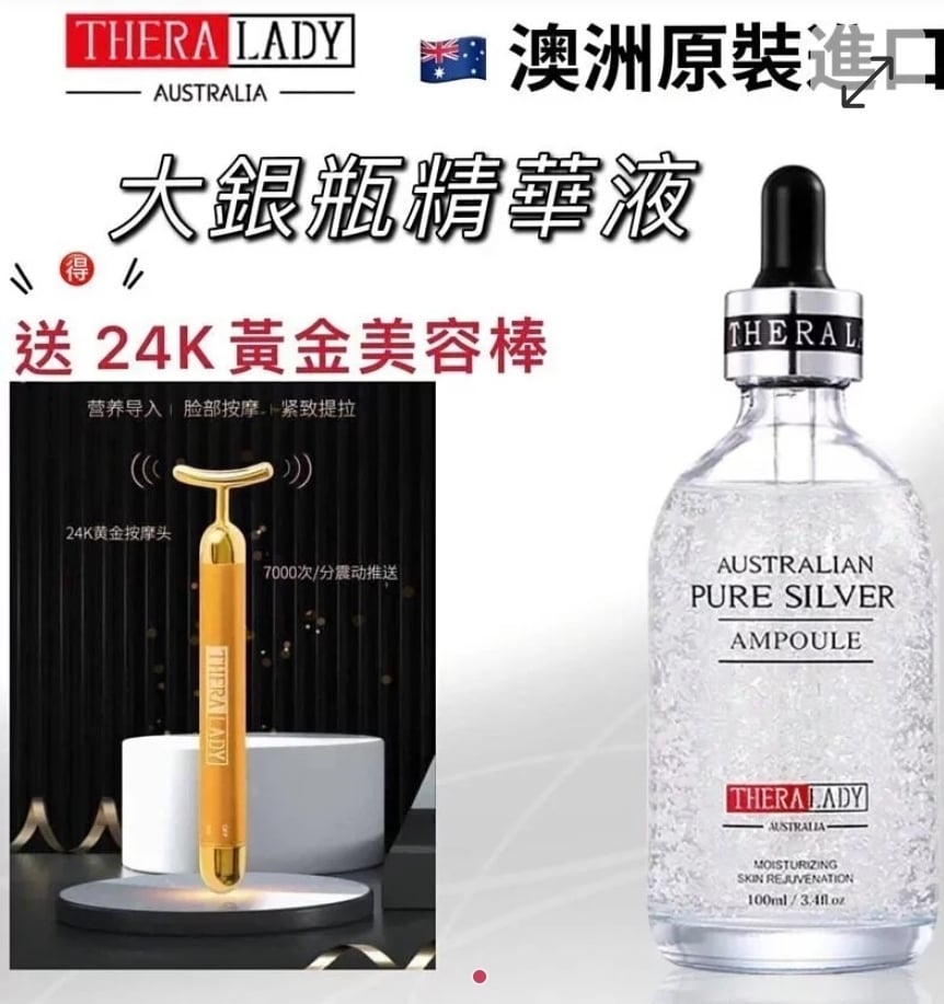 $69套.2套或以上:$60套.澳洲Thera Lady大銀瓶精華100ml+24K黃金美容套裝