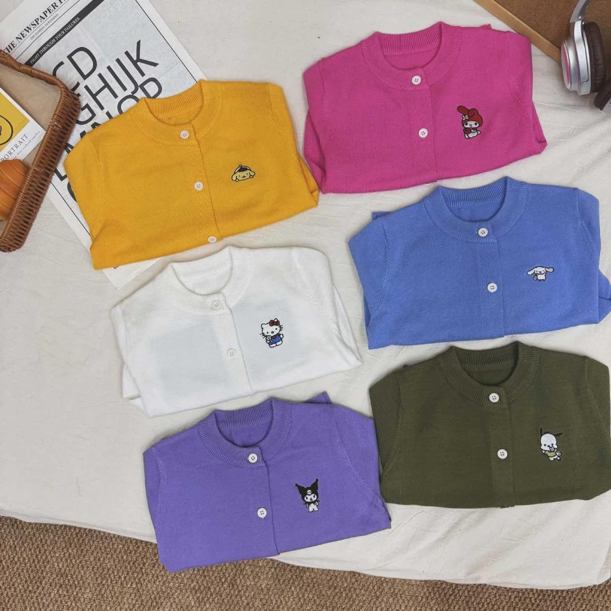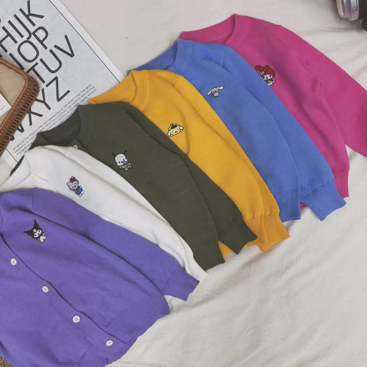 $70件。2件起$ 60件。 韓版Sanrio x nk 毛衣開衫 截單日期:長訂 逢星期一11am / 售完即止 預計到貨日:3-6星期 💛布甸狗 🤍 Hello Kitty 💜Kuromi 🩷Melody 💙Cinnamoroll 💚PC狗 Size 90 100 110 120 130 140