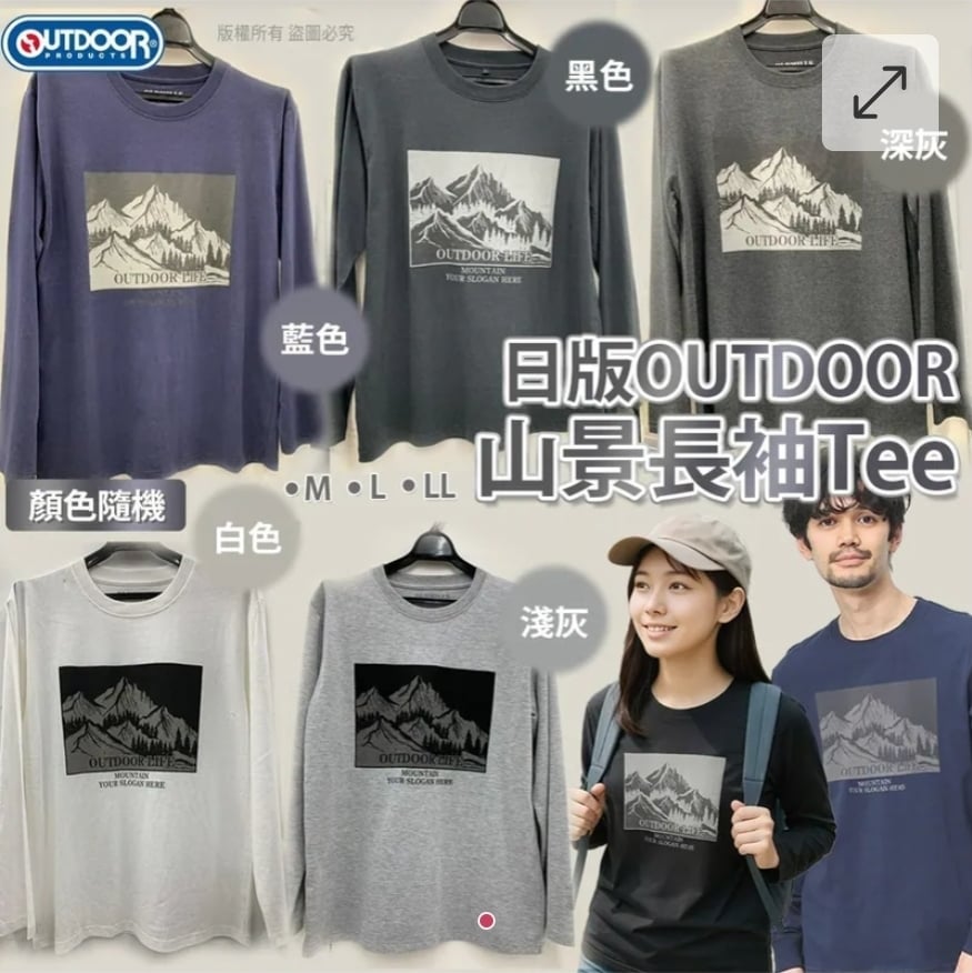 $75件.2件或以上$65件。日版OUTDOOR 山景長袖Tee (顏色隨機)