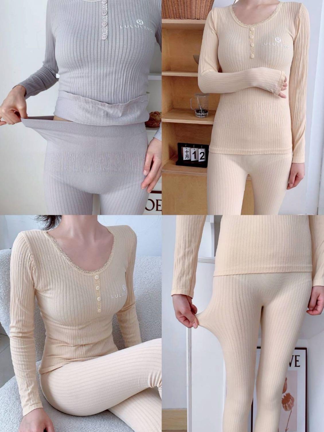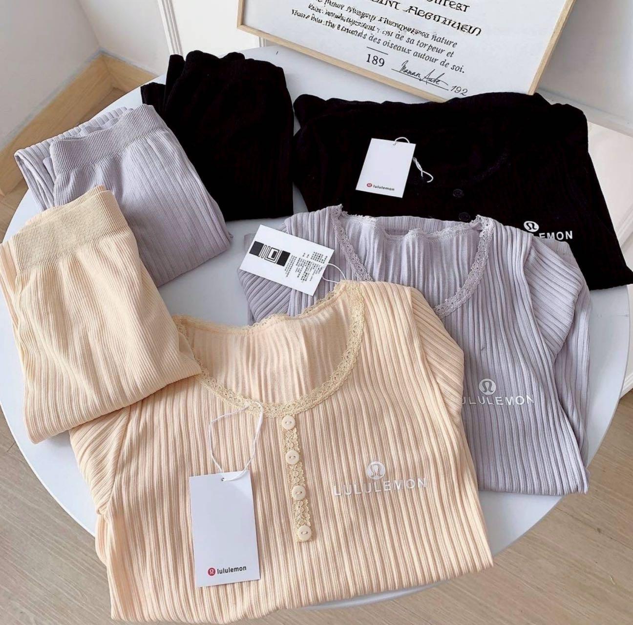 $75套。2套起$65套。lulu蕾絲花邊保暖套裝