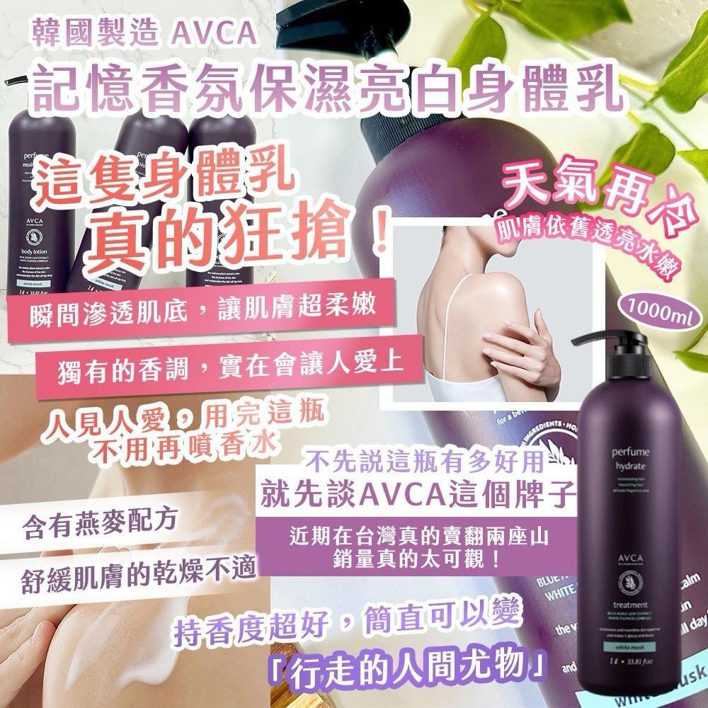 $75支.2支或以上:$65支.韓國製造 AVCA 記憶香氛保濕亮白身體乳 1000ml