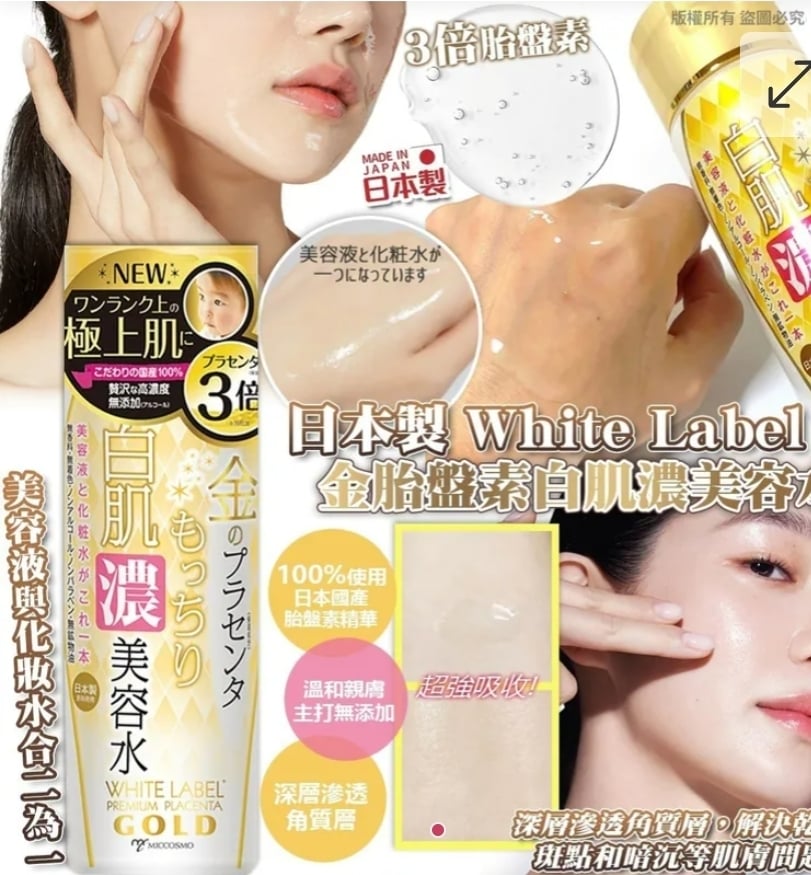 日本製 White Label 金胎盤素白肌濃美容水180ml