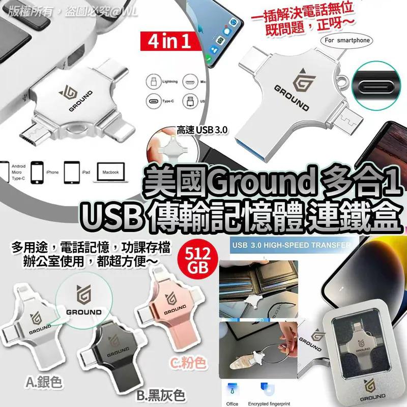 $75隻.2隻或以上每隻$65.美國Ground 4合1 USB 3.0傳輸記憶體512GB連鐵盒
