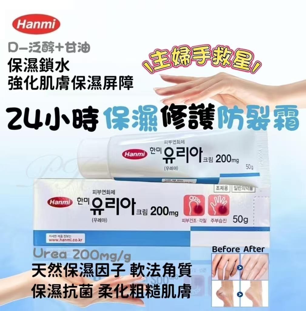 $79套2支, 韓國 Hanmi 手腳裂膏 50g (一套2支) 11月25日cut❌ 約12月尾/1月中 注意⚠ ⭕國際物流貨期或因受船運/不明朗因素而導致到貨有所延誤, 貨期預計貨到日期只供參考🙏🏼 有早有遲,下單前請留意⚠️ 韓國 Hanmi 手腳裂膏 50g 24小時保濕修護 💁♀️主婦手救星🤲 D-泛醇+甘油 保濕鎖水,強化肌膚保濕屏障 Urea 200mg/g 天然保濕因子,能軟化角質 保濕抗菌,柔化粗糙肌膚 用量:在患處塗抹均勻即可適用狀況:皮膚乾裂等。 儲存方法:密封保存,室溫存放。 這款不但可以用在手上,腳上也一樣可以用哦! 適用於:乾燥粗糙的手部,足跟,繭皮症,魚鱗選,老年幹皮症,脫皮,毛孔角化 乾裂等等 用法用量:1日數次,將患處清洗乾淨後塗抹按摩吸收即可 🔹🔹🔹🔹注意⚠🔹🔹🔹🔹 ⭕國際物流貨期或因受船運/不明朗因素而導致到貨有所延誤, 貨期預計貨到日期只供參考🙏🏼 有早有遲,下單前請留意⚠️