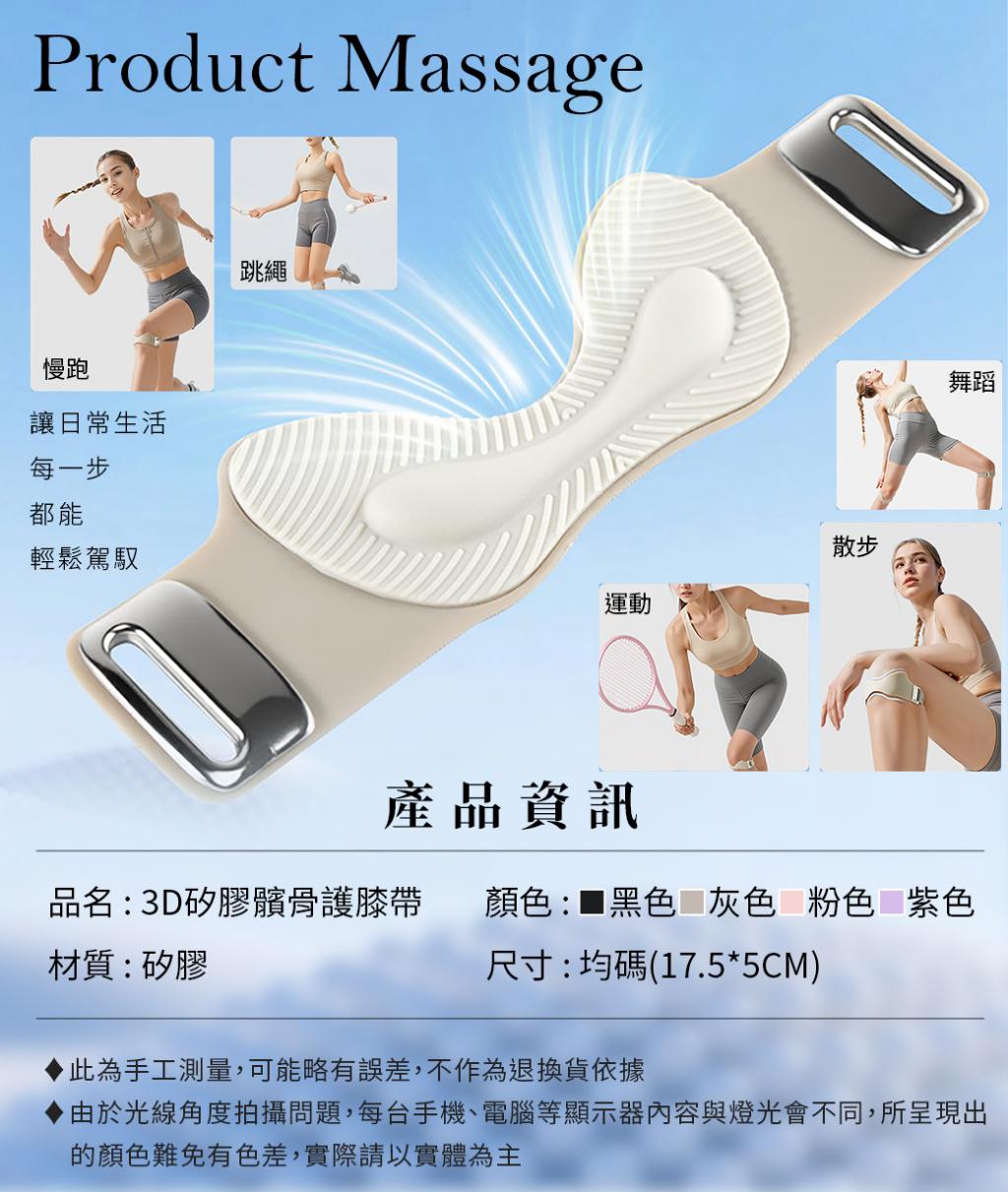 $79組2個。 2組起$69組, 3D矽膠髕骨護膝帶-1組2個 ⛔截單日期:2025/11/16 06:00PM 📦預計貨到日: 2026年1月中 「氣囊減壓·護膝神器」 ⚡膝蓋救星來了!3D氣囊減壓,運動不再怕膝蓋崩潰🦵「氣囊減壓·護膝神器」3D矽膠髕骨護膝帶【一組2個】 👟跑步、健身、打球的時候,膝蓋是不是經常「隱隱作痛」?😭 長期不保護,髕骨、半月板真的很容易受傷! 自從入手這款 「氣囊減壓·護膝神器」,我的膝蓋痛感明顯緩解了!🦵✨ 它內置 3D矽膠氣囊,貼合髕骨承托,跑跳的時候能吸收衝擊力,減少膝關節壓力。 加上 45°防滑紋設計,怎麼動都不滑落,打球、慢跑完全不怕掉!🔥 💡 內置8mm矽膠氣囊 → 高彈緩衝,分散運動時的衝擊力,減少關節擠壓。 💡 V型承托設計 → 緊貼髕骨弧度,穩定髕骨,運動更安心。 💡 45°防滑紋路 → 激烈運動也不滑落,跑步、跳繩完全穩固。 💡 3D導汗散熱槽 → 運動流汗不悶熱,保持乾爽舒適。 💡 雙向魔術貼+金屬扣環 → 穩固牢靠,不挑腿圍,男女都能戴。 顏值方面也完全在線!黑色專業、灰色百搭、粉紫少女感💖 不管運動還是日常護理都能輕鬆駕馭。 🏃♀️ 跑者、籃球黨、健身人、久站上班族必備! 👉 戴上它,膝蓋就像多了一層「安全氣囊」,運動自信感直接拉滿💯。 ⚡別等膝蓋受傷才後悔!這款「護膝神器」真的要提前準備! 【顏色】黑色/灰色/粉色/紫色 【尺寸】均碼(17.5*5CM) 【材質】矽膠 【產地】中國 📌注意事項📌 ⚠由於光線角度拍攝問題,每台手機、電腦等顯示器內容與燈光會不同,所呈現出的顏色難免有色差,請以實物為主,圖片僅供參考。 ==⚠️ 聲明 ⚠️== 1.本貨品為平行進口正貨。 2.所有帖文內容只作分享及參考用途。為免混淆視聽,所有商標或版權均屬有關商品品牌商標的持有人,敬請留意。 3.空運/海運有可能因各種不明因素影響而延誤到貨,所有貨品一經訂購後,如非廠家缺貨,不設取消/退貨/換貨。 4.貨品在運輸途中導致產品包裝外盒有任何損毀凹陷,但不影響其產品本身食用/使用,或有機會不預設外盒出貨,我司不會作任何更換或退款。 5.以上資料及外盒包裝只供參考,商品外盒原廠有更換新包裝權利,一切以實物為準。 6.顏色或因拍攝器材或顯示螢幕等因素而與實物有異,以上圖片及文字僅供參考,一切以實物為準。