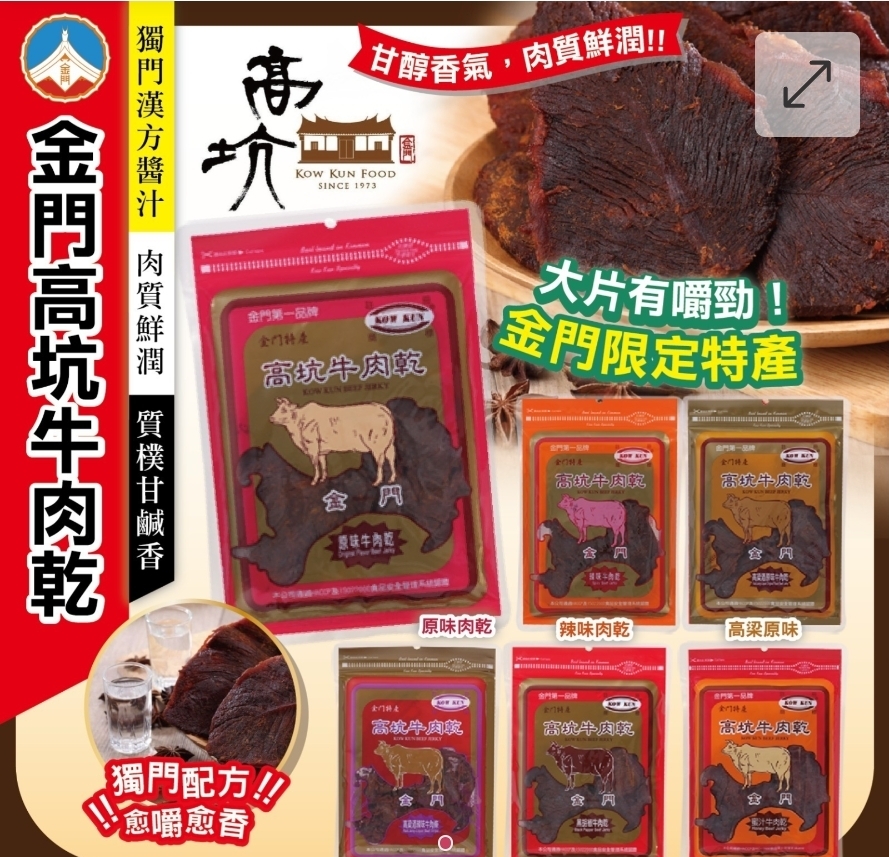$85包, 2包或以上 $70包,金門高坑牛肉乾全系列