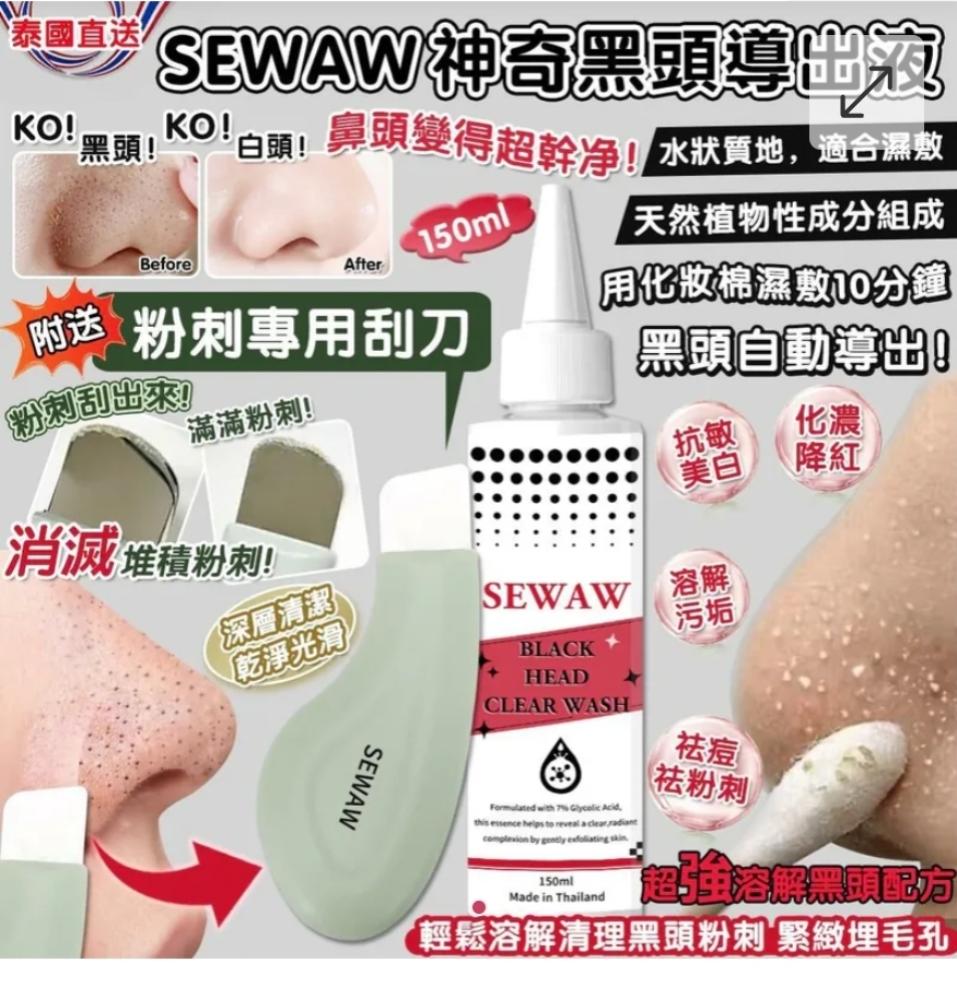$85套.2套以上$75套.泰國美容院專用 - SEWAW 神奇黑頭導出液 150ml (附送粉刺黑頭專用刮刀)