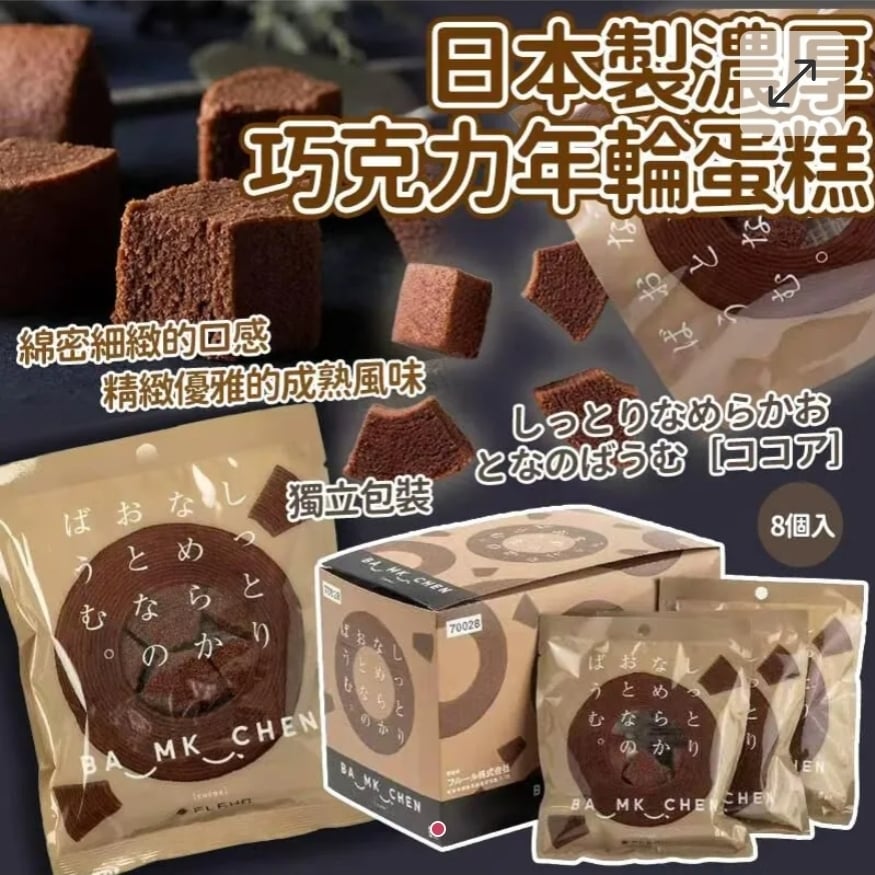 $85盒.2盒或以上每盒$75盒.日本濃厚巧克力年輪蛋糕(一盒8入)