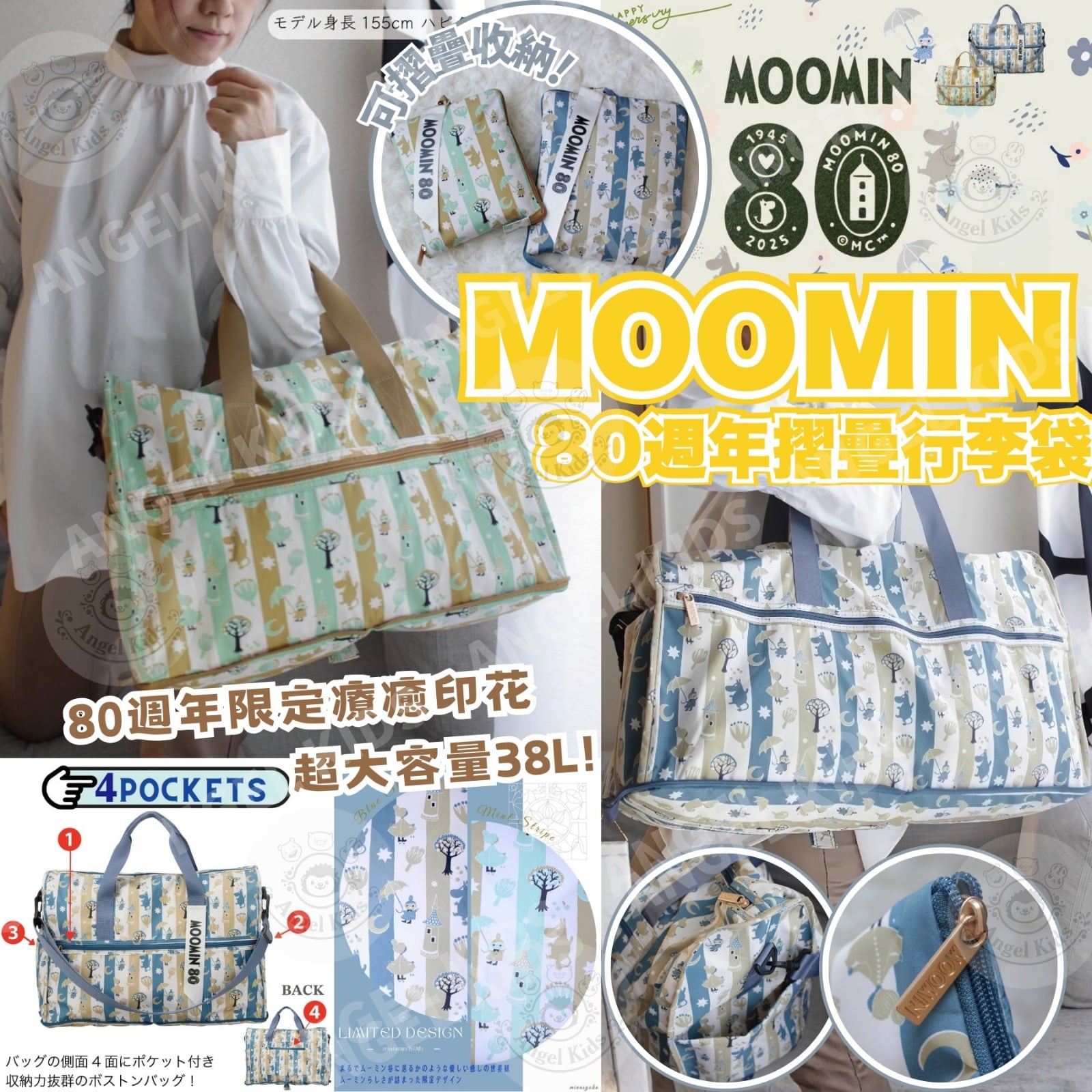 $88件.2件以上$80件.。貨期1月初。包SF。【🧳✨ 旅行の可愛夥伴|MO*OM*IN 80週年摺疊行李袋