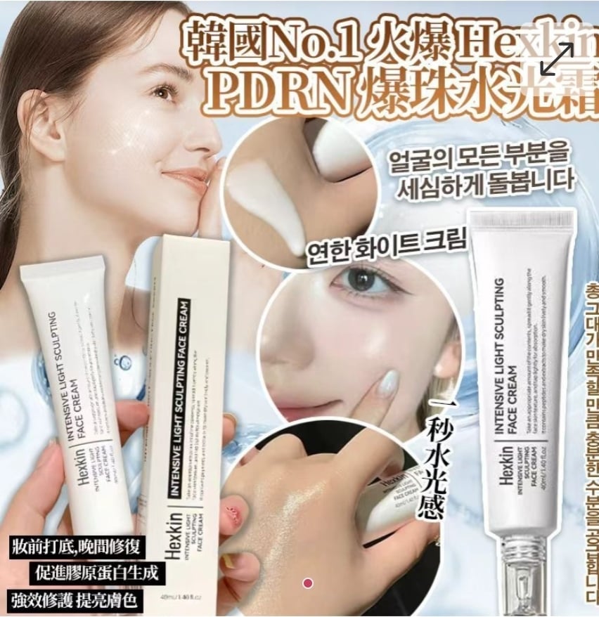$88支. 2支或以上每支$78支. 韓國No.1 火爆Hexkin PDRN爆珠水光霜(40ml) ⛔截單日期:2025/12/23 06:00PM 📦預計貨到日:2月頭 ✅採用院線水光針核心成分 ✅無痛無痕,一塗到位 ✅妝前打底,晚間修復 ✅全方位保濕抗紋抗衰老 ✅強效修護 ✅針對頑固性肌底受損 ✅淡化紋路 ✅增加肌膚彈性 ✅促進膠原蛋白增生 ㊙️採用護膚界大熱PDRN三文魚DNA ㊙️三重膠原 ㊙️八重勝肽 ㊙️三重植物萃取 ✨PDRN三文魚DNA✨ 👍最強屏障 👍修復受損組織 👍促進皮膚細胞再生 👍抗衰老,減緩皮膚老化過程 👍減少皺紋和細紋 ✨三重膠原✨ ✅水解膠原 ✅膠原提取物 ✅膠原蛋白肽 ✅保濕滋潤 ✅提高皮膚的水分 ✅防止皮膚鬆弛 ✅減少自由基對皮膚損害 ✅提高皮膚保水能力 ✨八重勝肽✨ ❤️抗炎抗皺 ❤️加快肌膚細胞再生 ❤️刺激膠原蛋白生成 ✨三重植物萃取✨ 🟠地黃/山茶花 /穿心蓮 🟠調節水油平衡 🟠促進新陳代謝 🟠改善肌膚暗沉 🟠提亮膚色 ✅適合所有肌膚 ✅乾皮保水鎖水 ✅油皮調節水油平衡 ❌無人工色素 ❌無防腐劑 ❌無氟米松 (皮質激素) 🇰🇷韓國制造🇰🇷 容量:40ml 到期:2027 ==⚠️ 聲明 ⚠️== 1.本貨品為平行進口正貨。 2.所有帖文內容只作分享及參考用途。為免混淆視聽,所有商標或版權均屬有關商品品牌商標的持有人,敬請留意。 3.空運/海運有可能因各種不明因素影響而延誤到貨,所有貨品一經訂購後,如非廠家缺貨,不設取消/退貨/換貨。 4.貨品在運輸途中導致產品包裝外盒有任何損毀凹陷,但不影響其產品本身食用/使用,或有機會不預設外盒出貨,我司不會作任何更換或退款。 5.以上資料及外盒包裝只供參考,商品外盒原廠有更換新包裝權利,一切以實物為準。 6.顏色或因拍攝器材或顯示螢幕等因素而與實物有異,以上圖片及文字僅供參考,一切以實物為準。