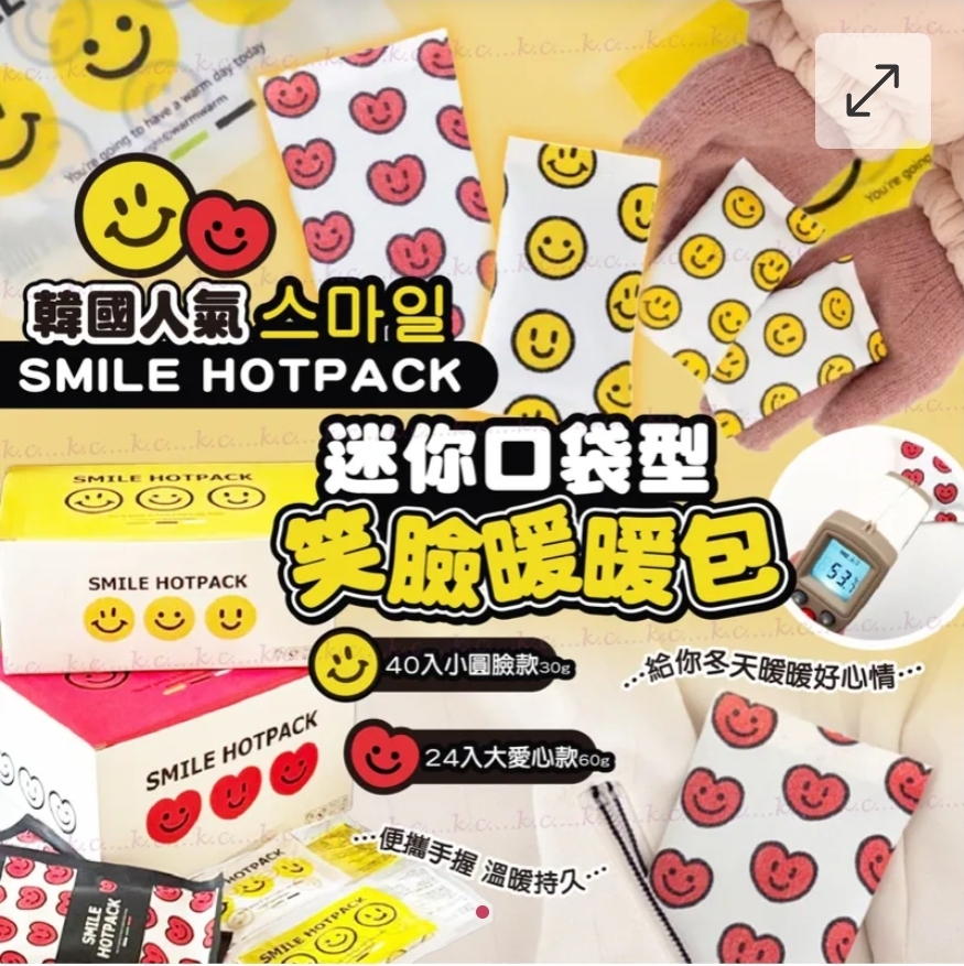 $88盒. 2盒或起$78盒. 韓國迷你口袋型笑臉暖暖包 ⛔截單日期:2025/11/14 06:00PM 📦預計貨到日: 2026年1月中 💛黃色微笑款 (1盒40包) ❤️紅色愛心款 (1盒24包) 🥶氣溫急降!冬天真的要來啦~☃️ #韓國製 #可愛又實用 #口袋型暖寶寶 💛黃色微笑款|❤️紅色愛心款 每一個都暖笠笠又療癒~🥰 天氣一轉凍,小朋友出門一定要有個暖手寶🔥 但傳統暖包又大又重、放唔入口袋又易跌~ 👉 呢款【口袋型暖寶寶】就啱晒你! ✔迷你尺寸|小巧方便攜帶 ✔放得入口袋|隨時隨地暖手唔怕凍 ✔高級柔軟布料|手感超舒服不刮手 ✔韓國KC兒童安全認證✔ 安心使用冇煩惱 ✔ISO 9001品質認證|品質+環保雙重保證🌱 ✔可愛笑臉/愛心設計,小朋友見到都開心 😄💖 不論係上學路上、出街、去旅行, 一握上手~即刻暖意滿滿,幸福感爆棚💫 🇰🇷100%韓國製造・安全又可愛 冬天小確幸💕 一人一個啱啱好~ 👇留言💛微笑 / ❤️愛心 即可選款落單! #韓國暖手寶 #冬天保暖神器 #孩子最愛 #香港限量發售 -保存期限:商品銷售速度快,依實際出廠為主。 -保存方式:避免陽光直射,請置於陰涼乾燥。 ==⚠️ 聲明 ⚠️== 1.本貨品為平行進口正貨。 2.所有帖文內容只作分享及參考用途。為免混淆視聽,所有商標或版權均屬有關商品品牌商標的持有人,敬請留意。 3.空運/海運有可能因各種不明因素影響而延誤到貨,所有貨品一經訂購後,如非廠家缺貨,不設取消/退貨/換貨。 4.貨品在運輸途中導致產品包裝外盒有任何損毀凹陷,但不影響其產品本身食用/使用,或有機會不預設外盒出貨,我司不會作任何更換或退款。 5.以上資料及外盒包裝只供參考,商品外盒原廠有更換新包裝權利,一切以實物為準。 6.顏色或因拍攝器材或顯示螢幕等因素而與實物有異,以上圖片及文字僅供參考,一切以實物為準。