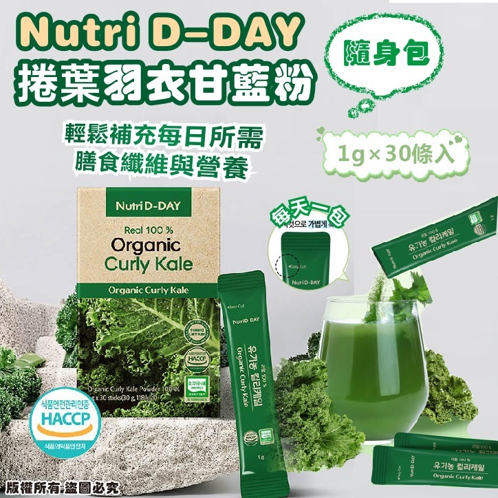 $89盒,2盒$79盒,韓國🇰🇷Nutri D-DAY 捲葉羽衣甘藍粉隨身包 1g×30條入