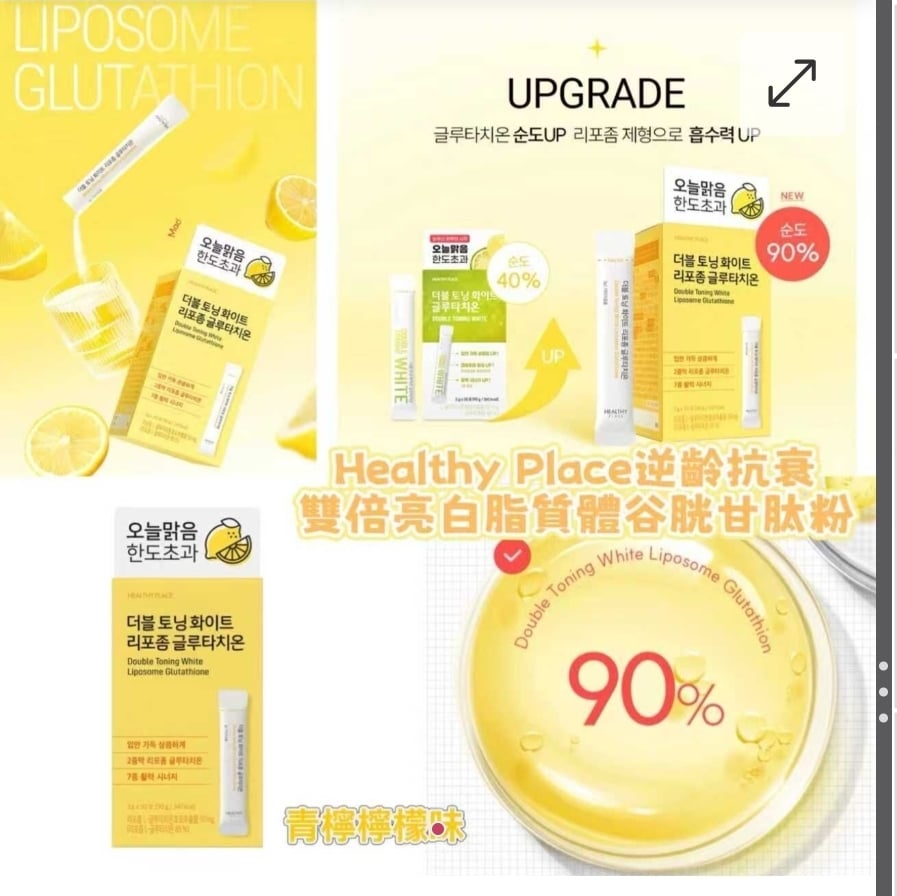 $89盒.2盒或以上每盒$79盒.Healthy Place逆齡抗衰雙倍亮白脂質體谷胱甘肽粉(一盒30條)