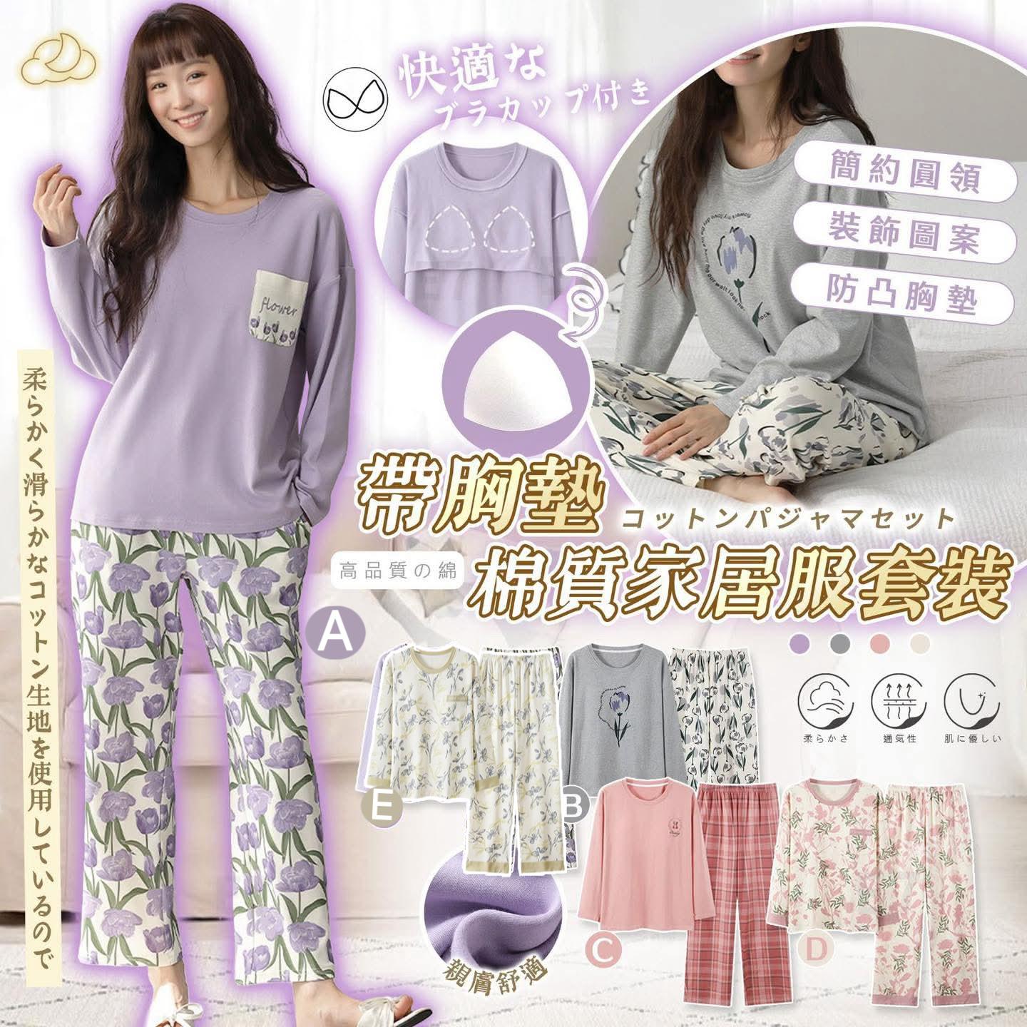 截單日:13/11 預計到港:12月底 $90套。2套起$80套。 樂天熱賣款式🔥帶胸墊棉質家居服套裝 🥰🥰有靚靚花花圖案🌷同埋防凸胸墊👍 💁🏻♀️💁🏻♀️秋冬舒適👏👏 🙀🙀日本樂天賣緊$2xx/套, 今日靚價最平$xx/套🤣🤣 天氣開始轉涼 💕 又係時候買新嘅秋冬家居服, 🉐🉐日本同事推薦呢款超舒服嘅家居服比大家🤩 質地唔太厚啱曬香港天氣, 最特別係有胸墊設計, 係屋企唔帶BRA 👙都唔尷尬🤫,舒服自在✌️ 👚衣服選用左優質布料, 高透氣,柔軟又有彈性😌著上身非常舒服‼️ 仲要係最新款式, $xx/套, 勁抵著✅, 👉👉快啲揀多兩套添置衣櫃啦~ 🔹1套裝包括上衣及長褲各一 🔹圓領、橡筋褲頭設計 🔹棉質, 透氣舒適 柔軟親膚😚 🌈5款選: A)紫色 B)灰色 C)玫瑰粉 D)粉满花 E) 芥末滿花 參考尺寸: M)適合身高: 150-160cm; 適合體重: 35-47.5kg L)適合身高: 155-165cm; 適合體重: 47.5-57.5kg XL)適合身高: 165-170cm; 適合體重:57.5-67.5kg XXL)適合身高: 170-175cm; 適合體重:67.5-77.5kg ⭕顏色或因拍攝器材或顯示螢幕等因素而與實物有異,以上圖片及文字僅供參考,一切以實物為準 ⭕外國進口貨品之貨期或受船運/空運延誤影響,恕不接受貨期延誤原因取消訂單,下單前敬請諒解 ⭕ 請注意:商品顏色可能會因電腦/手機呈現與拍攝關係產生色差,圖片僅供參考,商品顏色以實物為準。 ⚠️ 聲明及注意事項 ⚠️ ⭕顏色或因拍攝器材或顯示螢幕等因素而與實物有異,以上圖片及文字僅供參考,一切以實物為準 ⭕外國進口貨品之貨期或受船運/空運延誤影響,恕不接受貨期延誤原因取消訂單,下單前敬請諒解 ⭕本店並沒有持有任何品牌之版權. 所有商標及版權均屬該品牌持有人, 圖片及資料轉載只作分享用途。商品圖檔顏色因電腦螢幕設定 差異會略有不同, 以實際商品顏色為準, 所有圖片只供參考 。 ⭕ 部份外國進口商品會附有中文標籤(繁體/簡體),以貨件到步為準。 ⭕本店屬代購角色,所有有關貨品之責任,例如品質、真偽等,本店將不會作出任何承擔或法律責任 ⭕客人一經落單後即對所有條款細節清楚明白及接受,管理員擁有最終決定權,本店屬代購角色,所有有關貨品之責任,本店將不會作出任何承擔或法律責任。