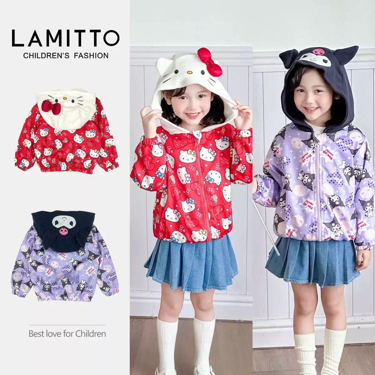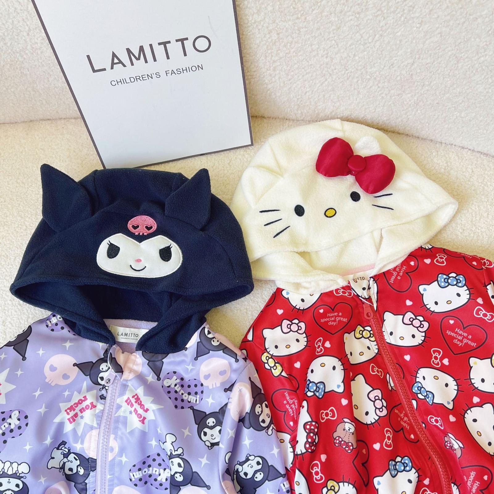 $95件。2件起$85件。 韓系Lamitto Sanrio 造型滿印外套 截單日期:長訂 逢星期一11am / 售完即止 預計到貨日:第一批1月,其後3-6星期 ❤️Hello Kitty 💜Kuromi Size 100 110 120 130 140 150