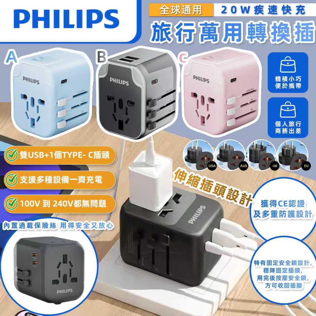 $95個,2個起$85個。 PHILIPS飛利浦全球通用旅行萬用轉換插 👏🏻👏🏻旅行必備呀😎😎全球通用🌍 20W快充!! 🉐🉐🉐原價$14x , ↘↘供應商清貨 $個🤣🤣 聖誕快到啦,大家都為旅行做準備✈好多地方插頭類型同電壓都唔一樣,如果每次都要check清楚先再帶適合嘅轉插,真係煩都煩死😩 依家只帶一個多國通用嘅轉插就可以解決晒你所有煩惱😆無論三腳好,兩腳平頭定兩腳圓頭都好,乜都幫你搞掂晒👍 🥳體積小巧,便於攜帶🌈適合個人旅行和商務出差使用🧳 🔌伸縮插頭設計,一體式置4款國際轉插,包括歐規、英規、美規及澳規,適用於200多個國家🌐 📱💻雙USB+1個TYPE- C插頭,支援多種設備一齊充電🙈 全球電壓通用: 由100V 到 240V都無問題 💡內置過載保險絲⛔用得安全又放心 ✅獲得CE認證及多重防護設計 ✅特有固定安全鎖設計, 穏陣固定插頭, 用完後按壓安全鎖, 方可收回插腳 ✅設有兒童保護門, 防止觸電 🌈3色選: A)粉藍色 B)灰黑色 C)粉紅色 尺寸:67 x 55 x 53mm 重量:105g 截單日:10月10日12:00 預計到貨日:12月底