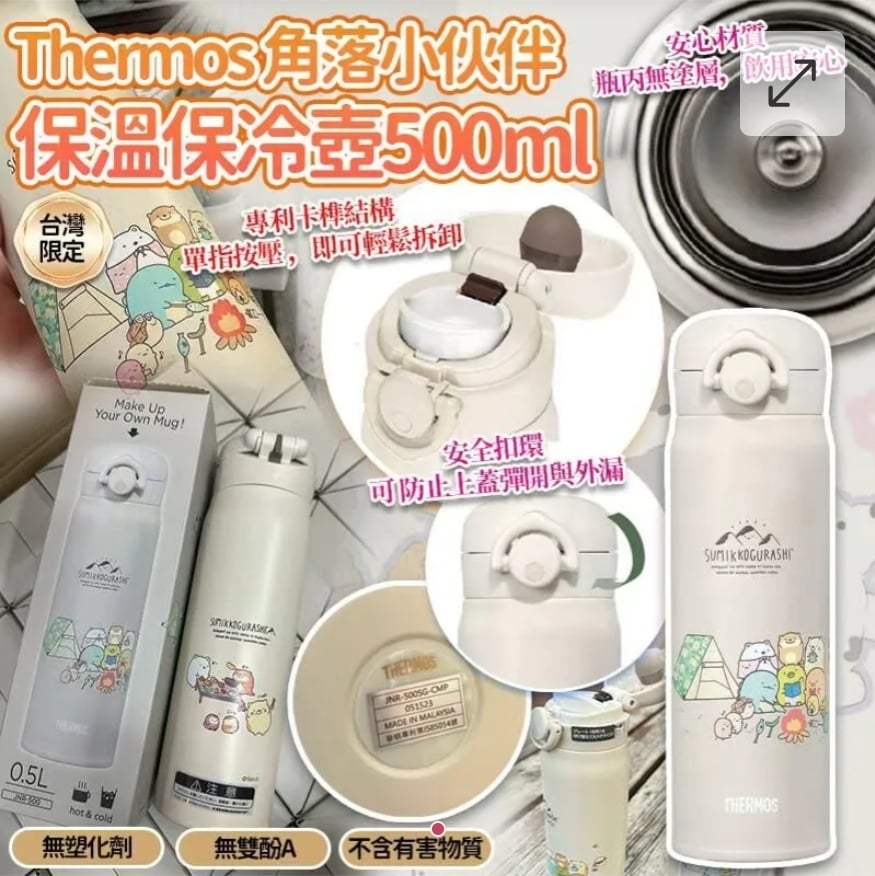 $95個.2個或以上每個$85.台灣Thermos角落小伙伴保溫保冷壺(500ml)*