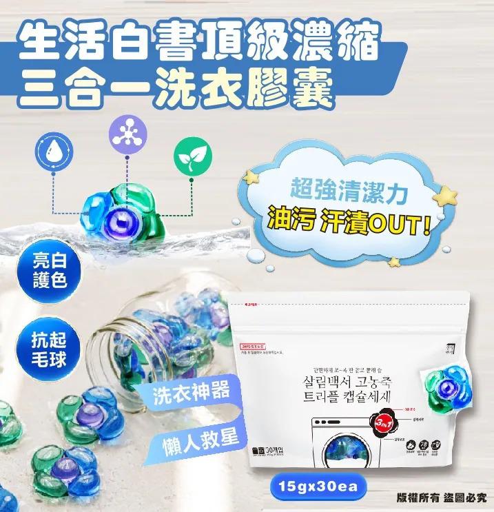 $95包.2包或以上:$85包.韓國生活白書頂級濃縮三合一洗衣膠囊 (1包30粒)