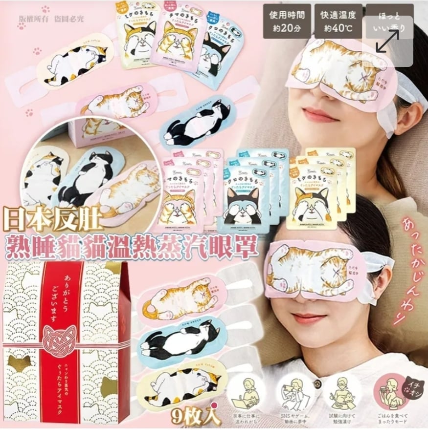 日本反肚熟睡貓貓溫熱蒸汽眼罩(9入)