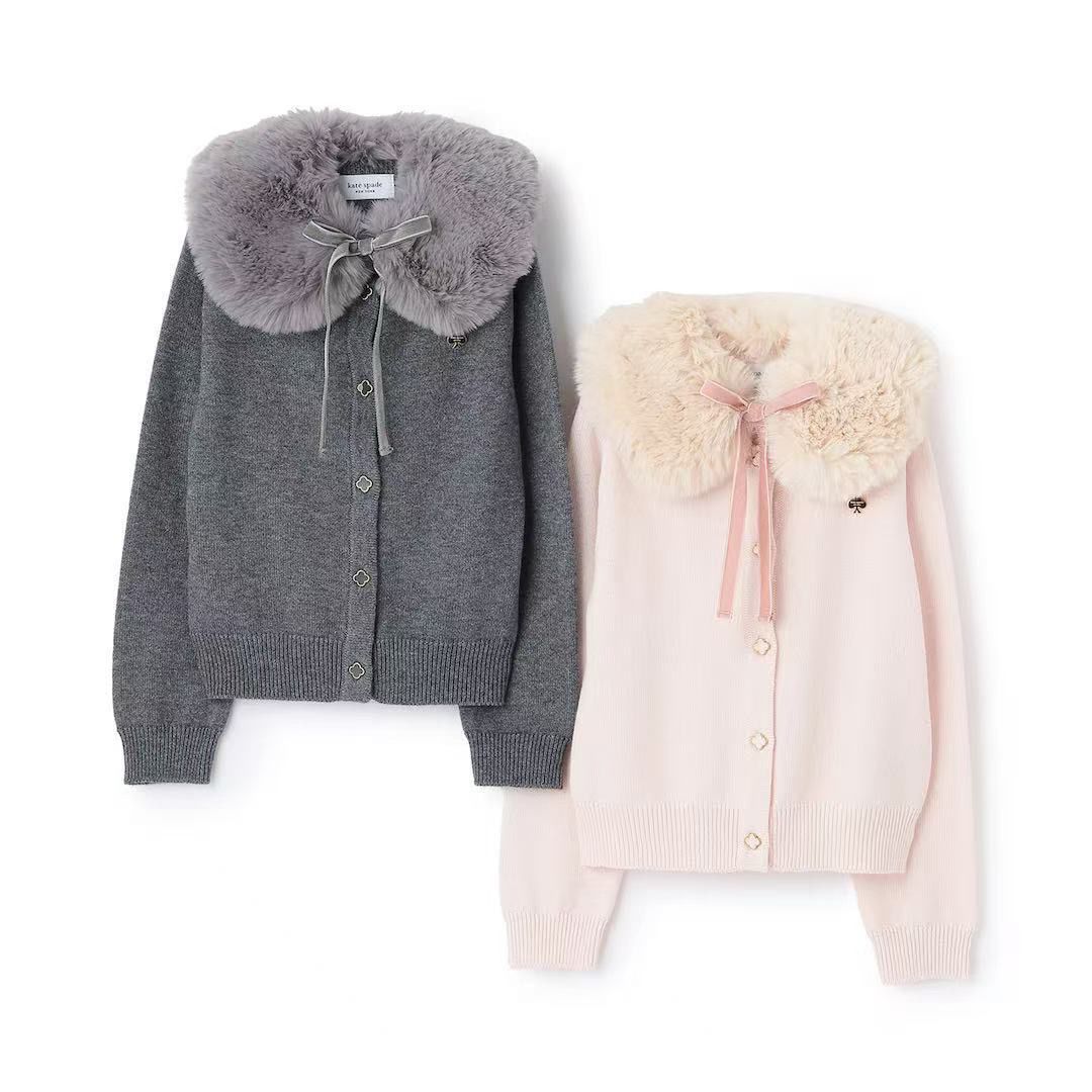 $98件。 日單Kate Spade毛毛領針織外套 售完即止🫶🏻 預計到貨日:12月 * 毛毛領🉑拆卸 170/180 媽媽都可以一齊着😍 🩷淺粉 *M/L sold out* 🩶灰色 Size S(110-120碼): 衣長: 38.5, 胸圍: 71, 肩寬: 27.5, 袖長: 42.5 M(130-140碼): 衣長: 45, 胸圍: 78, 肩寬: 32.5, 袖長: 49 L(150-160碼): 衣長: 52.5, 胸圍: 91, 肩寬: 40, 袖長: 55.5 XL(170碼): 衣長: 60, 胸圍: 103, 肩寬: 46, 袖長: 62 XXL(180碼): 衣長: 65, 胸圍: 114, 肩寬: 50, 袖長: 67