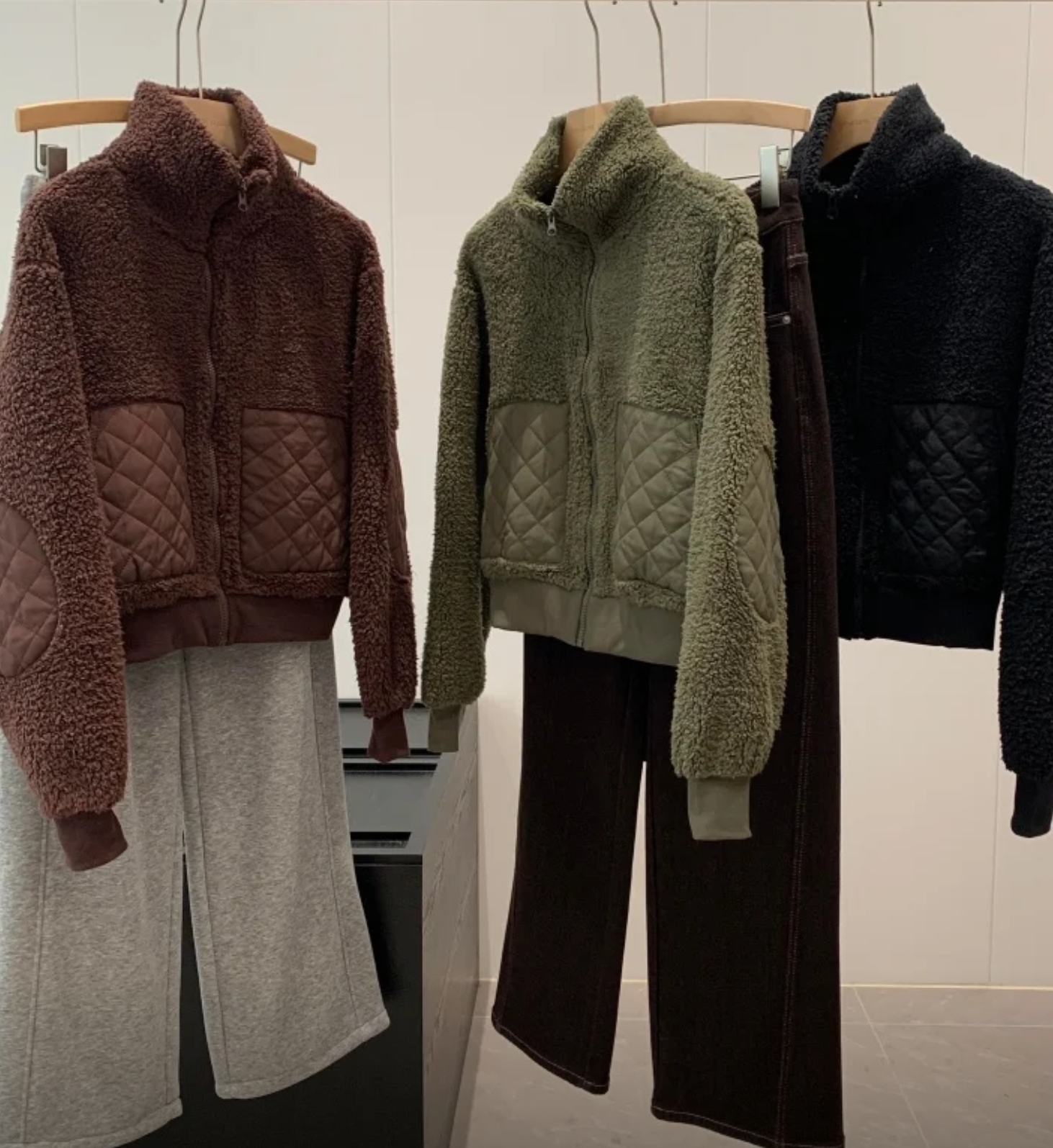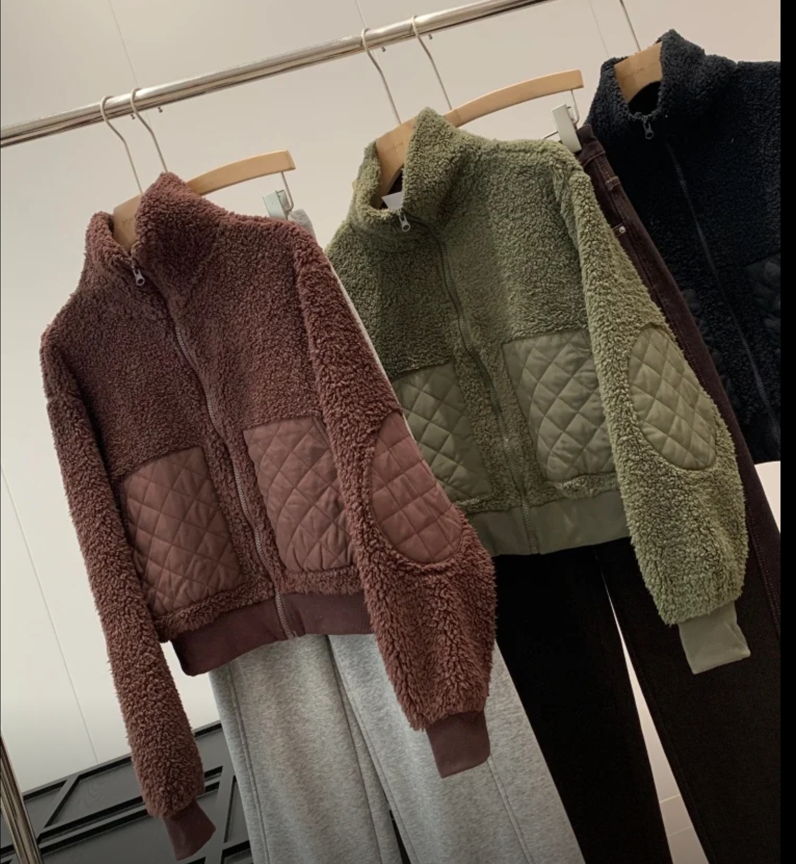 $98件。2件起$88件。🧥✨ 短款羊羔毛拼接外套(女裝) ✨❄️ 冬日必備・輕暖又有型 ❄️