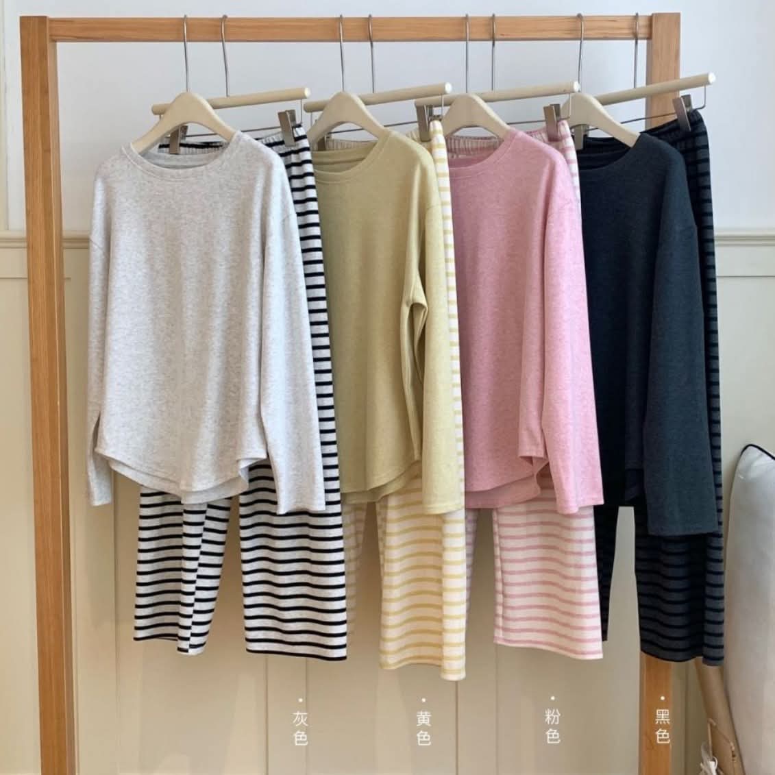 $98套。2套起$88套。💤 女士秋冬間條睡衣套裝#韓系慵懶風 #秋冬睡衣 #家居時尚