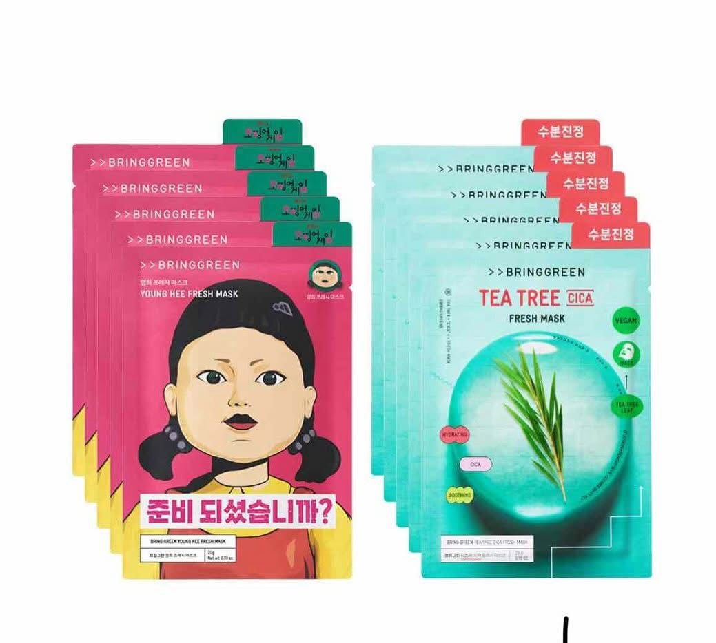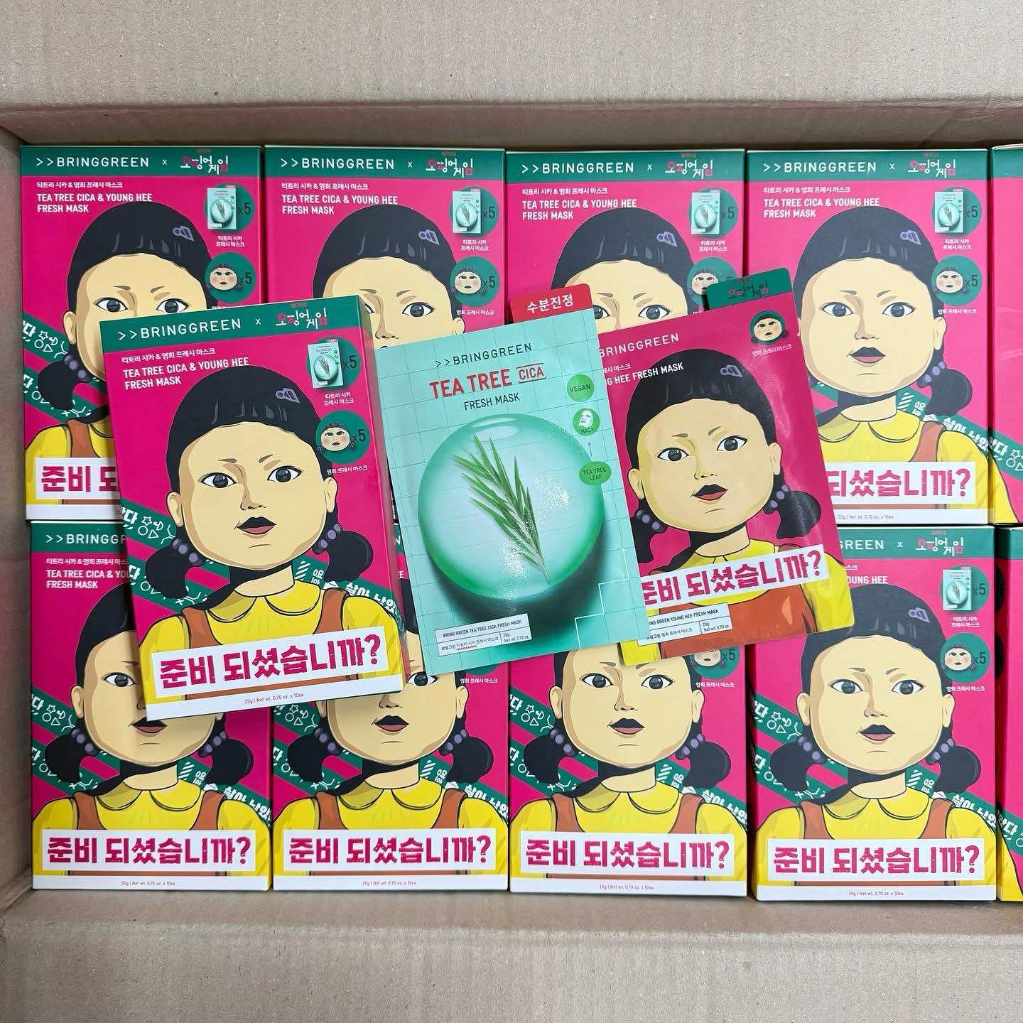$98套2盒。魷魚遊戲 英熙面膜 木頭人公仔 茶樹積雪草限量 面膜 5p+5p