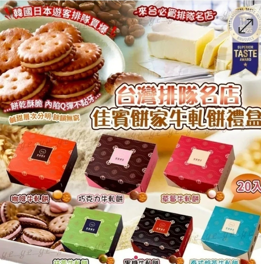 $98盒。2盒起$88盒。 台灣排隊必買佳賓餅家牛軋餅禮盒 (20入) ⛔截單日期:2025/12/19 06:00PM 📦預計貨到日:2月頭 ☕️ 咖啡 – 濃郁微苦,奶香平衡感爆表 🍫 巧克力 – 香醇可可,越吃越上癮 🍓 草莓 – 酸甜莓果,少女心大爆發 🍵 抹茶 – 茶香清爽,回甘不膩 🍯 黑糖 – 台灣古早味,溫潤甜香 🧋 泰式奶茶 – 異國風味,香滑迷人 🤩 韓妞日妞🇰🇷🇯🇵遊客狂掃,台灣人也愛到不行! 🍪 超酥脆餅乾 × 內餡Q軟 一口咬下,瞬間驚豔😋 外層酥脆不塌、甜度剛好、不黏牙 完美比例,越吃越涮嘴! 🎁 手信、自用、聚會零食都無敵合適! ✅ 拍照打卡超好看 ✅ 口感層次滿分 ✅ 台灣排隊必買名店直送 -產地:台灣 -規格:一盒20入 -保存期限:生產日起計30天。 📣非到港還有30日,還需運送時間,無法接受短效請勿下單 -過敏原資訊: ※本產品含麩質之穀物、牛奶、蛋、大豆及其製品,不適合其過敏體質食用。 ※本產品與其它含有魚類、亞硫酸鹽、芒果、堅果與芝麻種子的產品於同一工廠生產,食物過敏者請留意。 ==⚠️ 聲明 ⚠️== 1.本貨品為平行進口正貨。 2.所有帖文內容只作分享及參考用途。為免混淆視聽,所有商標或版權均屬有關商品品牌商標的持有人,敬請留意。 3.空運/海運有可能因各種不明因素影響而延誤到貨,所有貨品一經訂購後,如非廠家缺貨,不設取消/退貨/換貨。 4.貨品在運輸途中導致產品包裝外盒有任何損毀凹陷,但不影響其產品本身食用/使用,或有機會不預設外盒出貨,我司不會作任何更換或退款。 5.以上資料及外盒包裝只供參考,商品外盒原廠有更換新包裝權利,一切以實物為準。 6.顏色或因拍攝器材或顯示螢幕等因素而與實物有異,以上圖片及文字僅供參考,一切以實物為準。