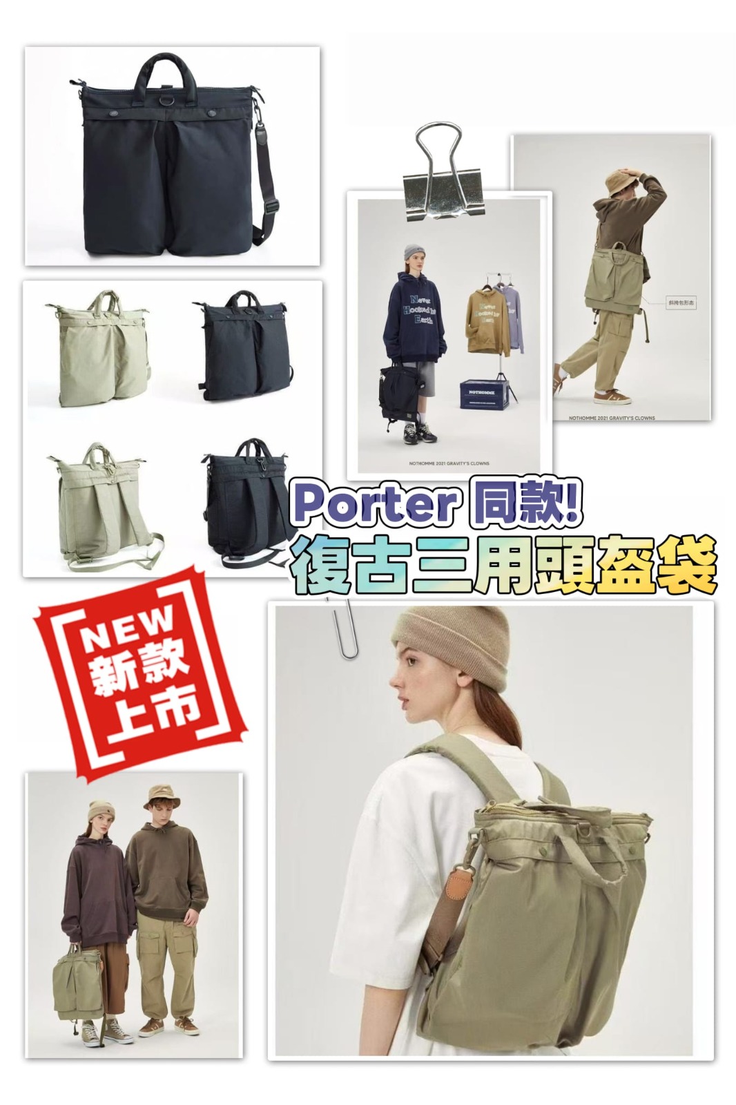 $99個,2個起$9O個。 🔥日系潮人必備🔥復古三用頭盔袋* 截單時間:*11月24日午夜00:00* 到貨日期:*預計1月下旬到貨* 產品簡介: 😱樂天一上架即賣1xxx+個‼️ 🔥🔥人氣榜首No. 1‼️抵到笑‼️ 🖤Porter同款!! 一袋三用・日系潮人必備 唔同場合要換唔同袋?呢個復古三頭盔袋一個就搞掂晒多個場合需要!💼 可以變斜揹袋、手提袋、背囊,三種形態隨心轉換,仲採用復古頭盔袋造型,日系潮人必備單品~ 仲有深藍同卡其兩隻百搭色任你揀,點襯都咁好睇!✨ ✅ 一袋三用設計 - 斜揹、手提、雙肩,一個價錢三個袋 ✅ 兩色選擇 ,低調易襯 ✅ 大容量設計 - 44×47cm尺寸,裝得落好多個人物品 🎯 三用形態 斜揹模式:日常出街最方便,解放雙手 手提模式:返工返學,簡約有型 雙肩模式:旅行出行,負重更輕鬆 顏色: A)深藍色 B)卡其色