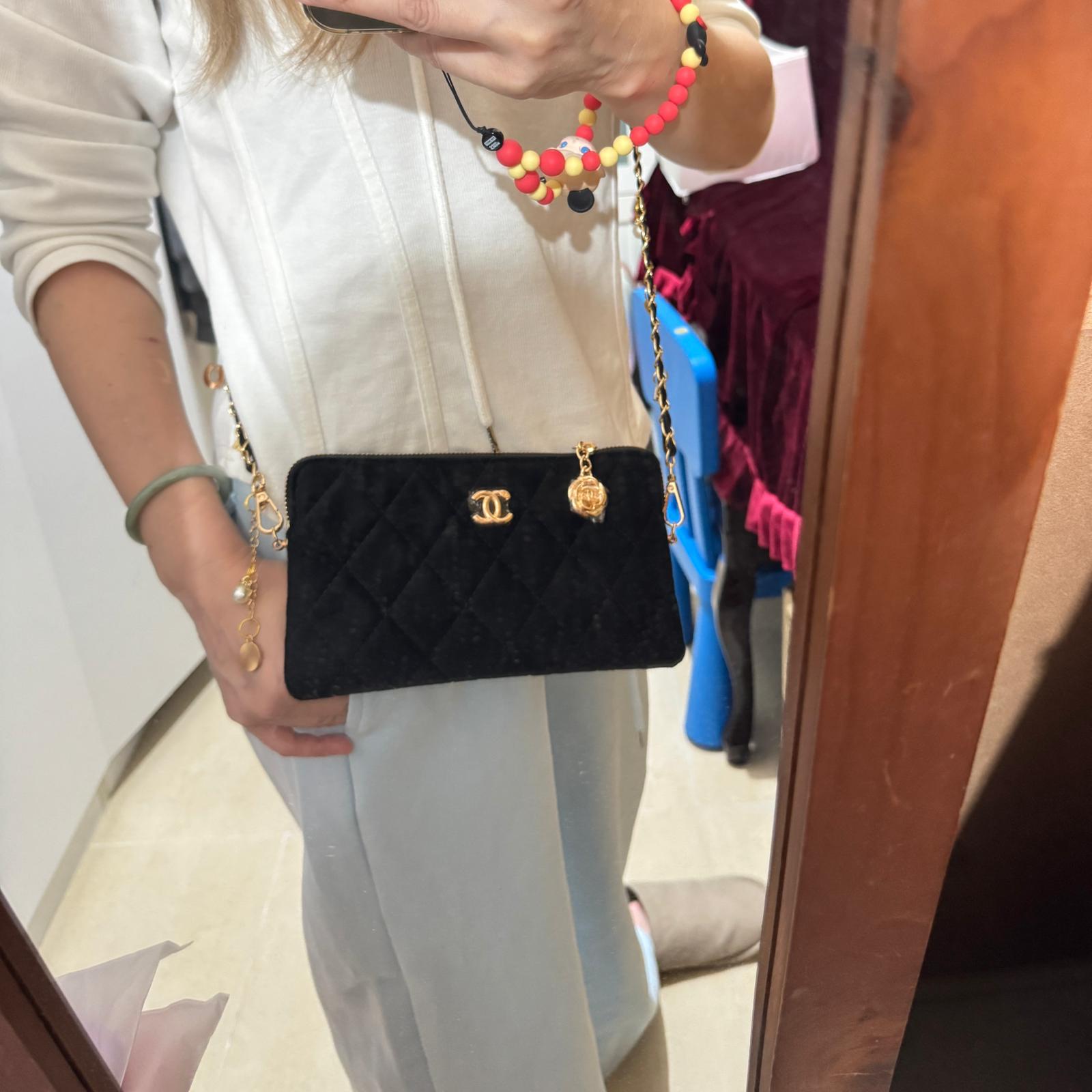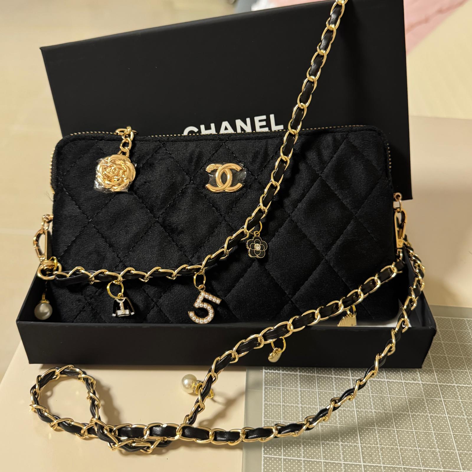 *現貨*$256, Chanel 贈品化妝包 $288改裝加鏈,長或短,需時2星期 山茶花吊飾黑絲絨配搭 有錢買不到系列~這種材質放包里就不怕划痕啦 一朵精緻的山茶花綻放在包鏈上綻放,耐看且高貴優雅。 款式也超實用,口紅/粉餅/手機都能輕鬆裝下。 尺寸:22×13×2cm — 本貨品為平行進口 所有帖文內容只作分享及參考用途。為免混淆視聽,所有商標或版權均屬有關商品品牌商標的持有人,敬請留意 ⭕顏色或因拍攝器材或顯示螢幕等因素而與實物有異,以上圖片及文字僅供參考,一切以實物為準 ⭕外國進口貨品之貨期或受船運/空運延誤影響,恕不接受貨期延誤原因取消訂單,下單前敬請諒解