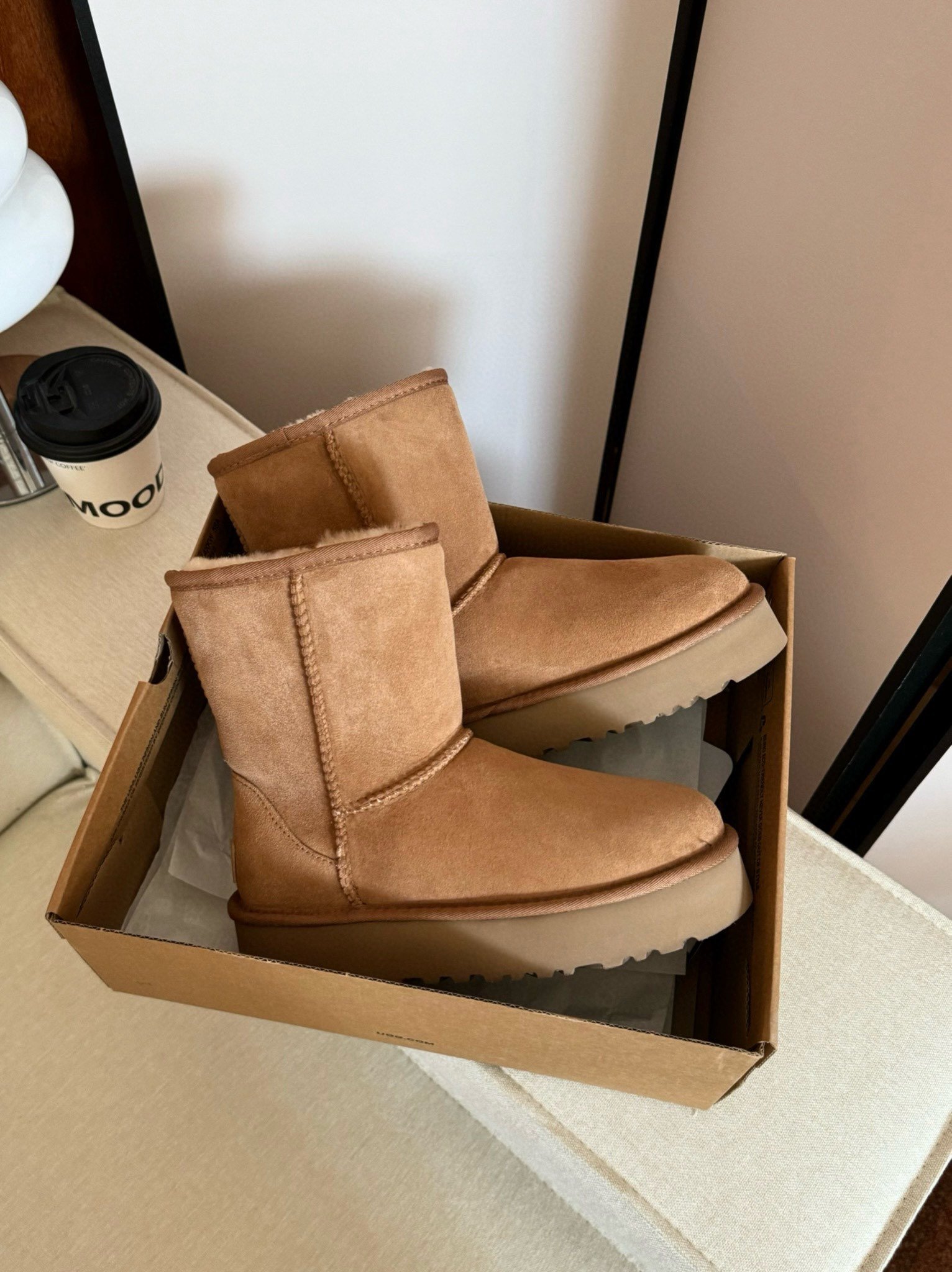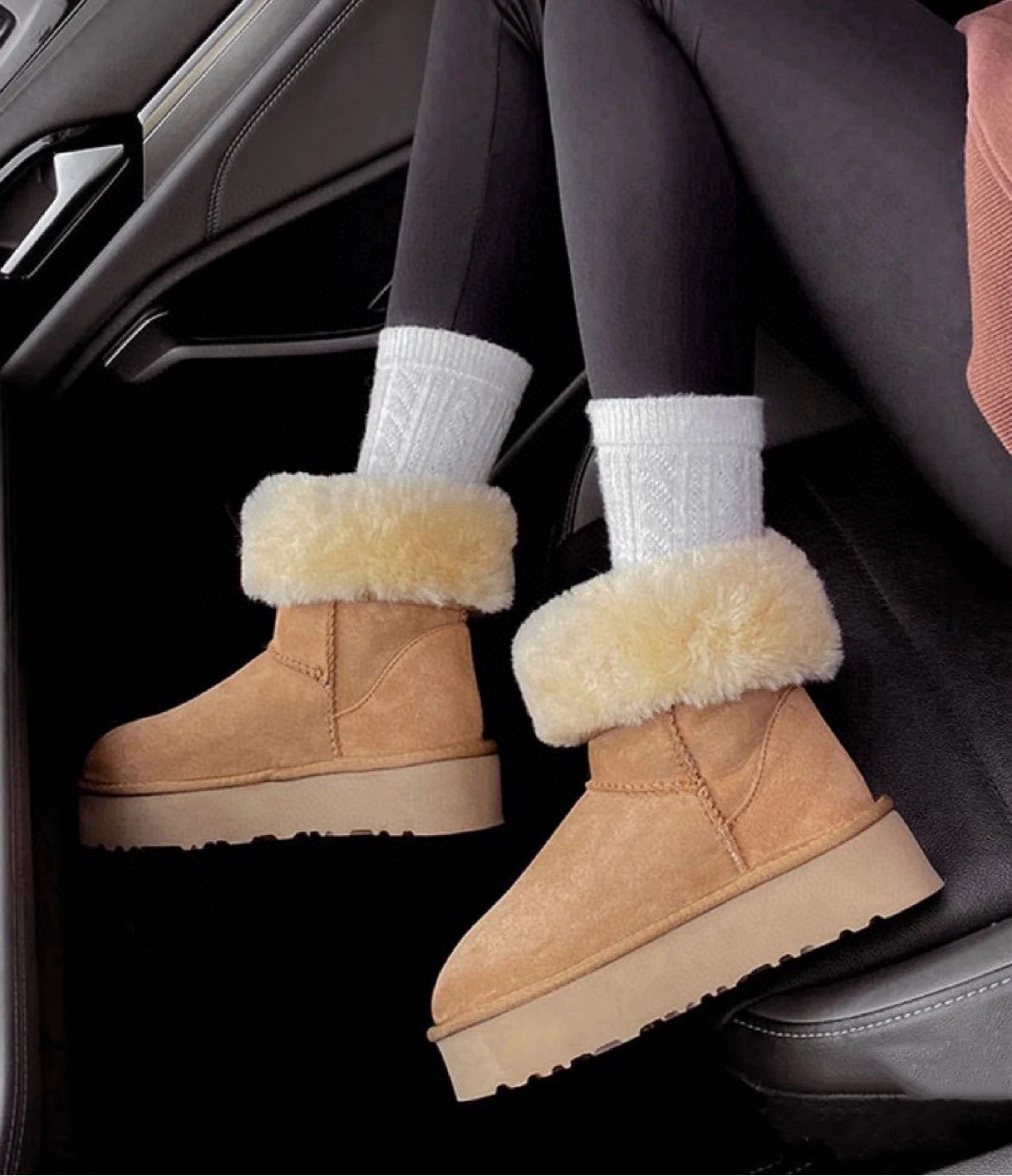 ❄️ UGG 厚底中筒皮毛一體雪地靴【Dx0249027205】$358對。2對起$348對。