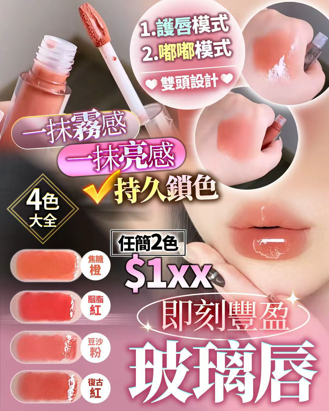 任選2色$168。 2g+2g 。 英國製玻璃唇 搶眼秘訣,首先由嘴唇開始。搽完呢支唇膏,即刻變出水潤玻璃唇。就算有冇化妝,唇色都好緊要。我試咗四隻色,隻隻都靚到爆。 雙頭合一:一支=唇釉+唇油 今日$1xx 任簡2色 平均一支先$xx 😍😍 呢個價錢可以試到4個唔同感覺 真係抵到飛起 💄一端顯色鎖色 💄一端滋潤亮澤(霧面、水光、漸變) ‼️ 隨你操控 ‼️ 自帶唇釉“鎖色膜”科技:持妝 6–12 小時 成膜劑結構穩固 ✨✨ 唇油“滋潤膜”:修護 + 水光感 • 植物油或輕質油脂提升保濕 • 減少拔乾,改善唇紋 • 塗一層即刻“玻璃唇” • 顯色自然、不易變暗、不發灰。 • 成膜體系加強持久度 • 帶來真正的“輕薄膜感”。 • 長效滋養,不厚重 顏色 : 豆沙粉 焦糖橙 胭脂紅 復古紅 2g+2g 英國製