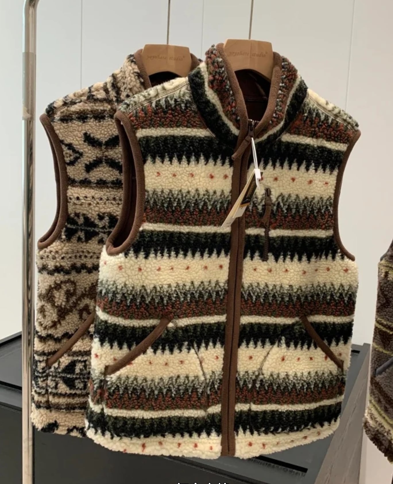 多色選/$155件。2件起$145件。🔥 秋冬必入|民族風羊羔絨拉鍊馬甲(背心)🔥