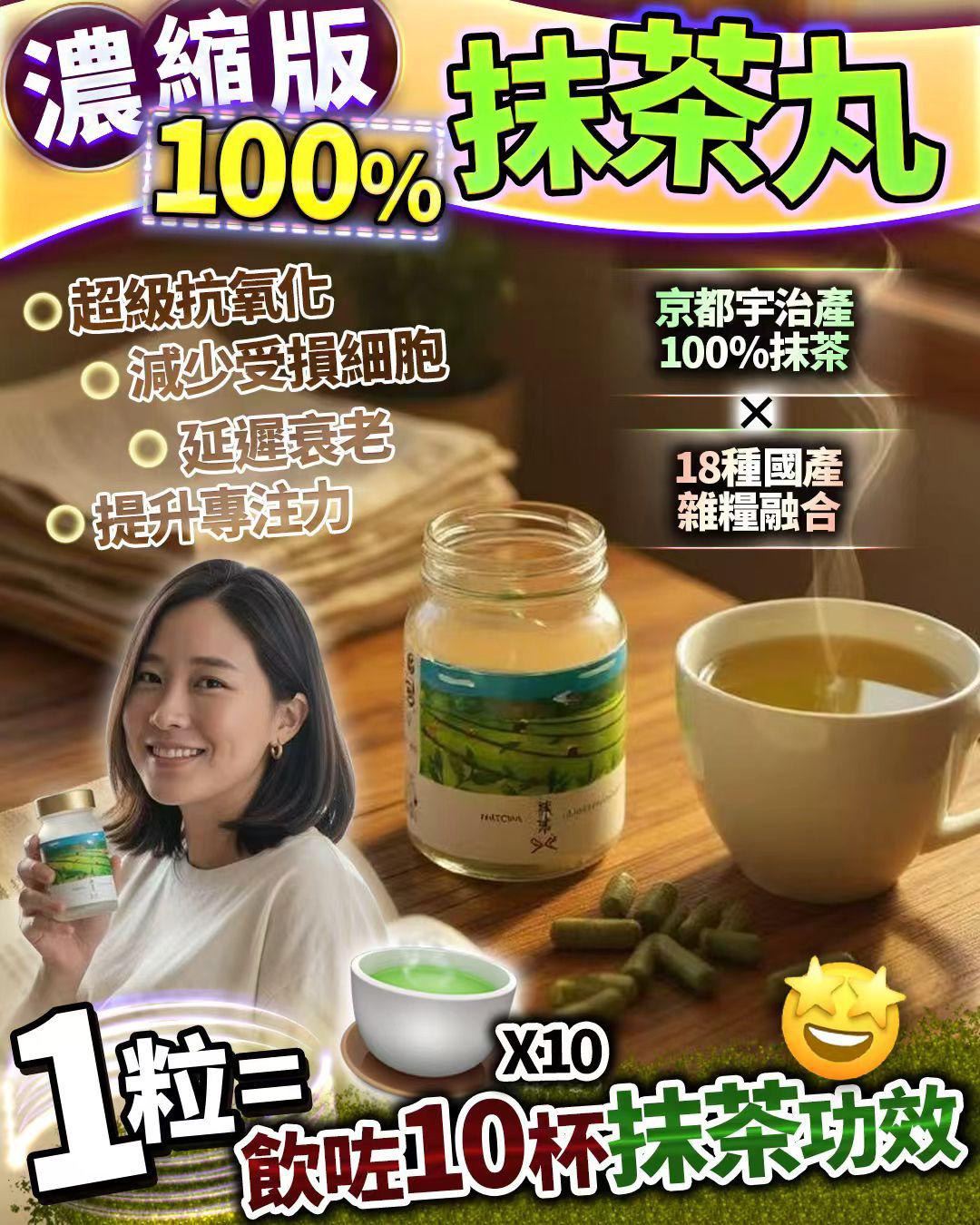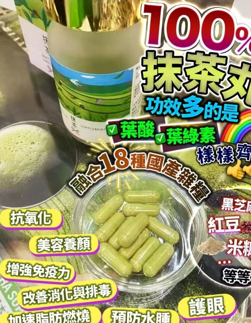 日本100%抹茶丸 $220樽。2樽起$ 210樽。 2星期到貨💕 日本抹茶🍵出哂名 👍 我去日本都必定買幾盒 抹茶粉 ❤️ 但日日要沖都幾麻煩🥺 全新推出 濃縮版100%抹茶丸 一粒=飲左10杯功效 🌈抹茶好處包括: * 強大的抗氧化能力 * 提升專注力與記憶力 * 促進心血管健康 * 幫助減肥 * 改善腸道健康 * 舒緩情緒,減緩焦慮 * ➡️融合18種國產雜糧,打造抗氧化、美容養顏、增強免疫力的超級食品新選擇——‘VICELLA抹茶營養片’,每日一粒,輕鬆攝取傳統和風健康精華‼️️ * ✨京都宇治100%抹茶:抗氧化,富含兒茶素(EGCG),中和自由基,延緩衰老,天然咖啡因溫和刺激,提升專注力,無咖啡依賴,加速脂肪燃燒,輔助體重管理,茶氨酸調節腦波,緩解壓力與焦慮 ✨國產雜糧(黑芝麻+紅豆+米糠);提供膳食纖維、B族維生素及礦物質,平衡現代飲食缺陷,雜糧纖維促進益生菌增殖,改善消化與排毒,低GI成分緩慢釋放能量,減少血糖波動 ✨葉酸(維生素B9):預防貧血,尤其適合女性及孕期營養補充 ✨鉀元素:調節鈉鉀平衡,預防水腫與高血壓 ✨葉黃素:護眼成分,過濾藍光,緩解電子屏幕疲勞 ✨日本製