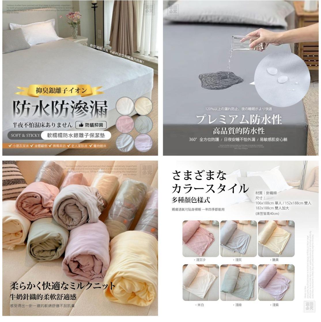買2件每件優惠$10 高訂 雲柔母嬰級 防水保潔墊 ⛔截單日期:2025/10/15 06:00PM 📦預計貨到日:12月頭 淺豆沙 淺灰 鵝黃 淺紫 淺綠 米白 (遇缺隨機) A:單人$85. B:雙人$95. C:雙人加大$99. 買2件每件優惠$10 裸睡級 2025最新款‼️ 為何叫母嬰等級? 因為它材質的柔軟度 連寶寶這麼細嫩的肌膚都適合 🌟獨家工藝 高訂款 A面親膚層+B面防水層 舒適度最高 功能性最強 🌟專家建議床包每個月要換一次 這麼實惠的高功能款 怎麼能不備上一兩件 全家大小都適合 ❌小孩愛尿床 ❌女人來MC ❌老人會夜尿的 👏母嬰級裸睡 使用軟到心坎的布料👏 不用再忍受與蟎蟲共枕眠 ⭐一般小家庭 搶翻天 大人好眠 嬰幼兒躺著就睡著😴 ⭐知名飯店民宿 ⭐各大醫院機關 同款使用 一致盛讚! 親膚透氣可貼身裸睡 一年四季都能用 透氣柔軟 機洗水洗沒問題 不掉色 各種類型床墊都ok 🔰防水防滲漏🔰防蟎又抑菌❤️ 時刻呵護肌膚 易敏感肌安心躺 減少肌膚摩擦 邊睡邊養出稚嫩寶寶肌✨✨✨ 🌟抑菌防螨 🌟高質感柔軟布料 🌟防滲水達100%💦 無論大人小孩中老年人或寵物 利用物理防螨與抗菌 過敏源一次OUT 畏懼的衛生難題瞬間遠離! 產地:PRC (台灣監製) 材質:針織棉 尺寸: 106x188cm單人 152x188cm雙人 182x188cm雙人加大 (床笠皆高40cm) ==⚠️ 聲明 ⚠️== 1.本貨品為平行進口正貨。 2.所有帖文內容只作分享及參考用途。為免混淆視聽,所有商標或版權均屬有關商品品牌商標的持有人,敬請留意。 3.空運/海運有可能因各種不明因素影響而延誤到貨,所有貨品一經訂購後,如非廠家缺貨,不設取消/退貨/換貨。 4.貨品在運輸途中導致產品包裝外盒有任何損毀凹陷,但不影響其產品本身食用/使用,或有機會不預設外盒出貨,我司不會作任何更換或退款。 5.以上資料及外盒包裝只供參考,商品外盒原廠有更換新包裝權利,一切以實物為準。 6.顏色或因拍攝器材或顯示螢幕等因素而與實物有異,以上圖片及文字僅供參考,一切以實物為準。
