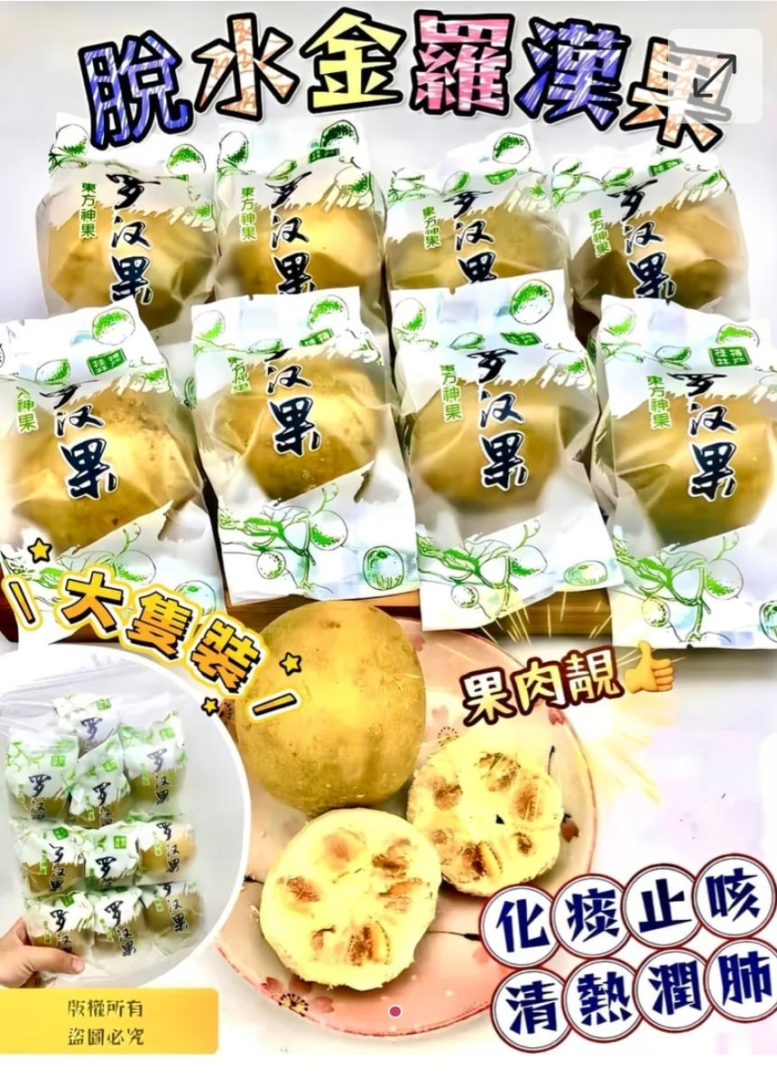 脫水金羅漢果-係用最新科技底溫脫水,烘乾而成,完全保留住原果嘅營養同味道-而且肉質白嫩、真正做到色、香、味俱全👍