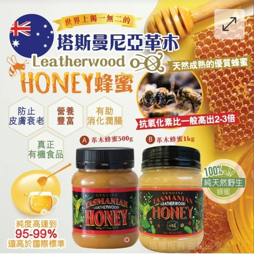 買2樽起每樽優惠$10樽. 澳洲塔斯曼尼亞革木Leatherwood Honey蜂蜜 ⛔截單日期:2025/11/13 06:00PM 📦預計貨到日:2月頭 A.革木蜂蜜500g: $105樽. B.革木蜂蜜1kg: $169樽. 買2樽起每樽優惠$10/樽 🐝🐝🐝產自塔斯曼尼亞 🐝🐝🐝世界上獨一無二的——革木蜂蜜 🐝🐝🐝長期飲用蜂蜜水能抗氧化清除自由基, 美容養顏,舒緩皮膚乾燥,食慾不振,便秘.... 革木樹/Leatherwood Tree是澳洲塔斯馬尼亞島獨有的一種野生植物🌳 革木花的革木蜂蜜更是塔斯馬尼亞島獨有的特產🍯 它的純度非常高,達到95-99%,遠高於國際標準(70%) 與一般的普通蜂蜜相比較,澳洲塔斯馬尼亞的革木蜂蜜是天然成熟的優質蜂蜜🍯 🉐具有抗氧化、防止皮膚衰老等養生功效 🉐抗氧化能力是其他澳洲蜂蜜的2-3倍 🉐根據昆士蘭大學Bruce D’Arcy教授的研究報告顯示革木蜂蜜含有大量的抗氧化素(多酚類成分),比一般澳洲蜂蜜高出2-3倍 ❇️以下是塔斯馬尼亞蜂蜜最主要的特點 🍯氣味獨特,香味馥郁持久 🍯真正的有機食品,蘊含健康的活力 🍯營養豐富,顏色金黃明亮,含水量少 🍯採集週期長達三周以上,是不折不扣的天然成熟蜂蜜 🍯完全採自未受任何污染的野生樹木,是100%純天然野生蜂蜜 📌食用方法︰ 🌟可以泡成蜂蜜檸檬、蜂蜜綠茶 🌟加在水裡泡成蜂蜜水 比手搖飲衛生健康美味,飯後一杯助消化潤腸助排便,好處多多👍👍 -產地︰澳洲 ⚠️⚠️注意事項⚠️⚠️ ❌不能用滾水沖或高溫蒸煮蜂蜜 蜂蜜中除了含65%至80%的葡萄糖和果糖外,還含有豐富的酶、維生素、礦物質等。食用蜂蜜時,要用溫水沖飲,水溫不超過60℃為宜。 如果高溫開水沖入蜂蜜,不僅破壞了其豐富的營養物質,還會導致其天然的色、香、味都發生變化 ( 可以先用室溫水沖開蜜糖,再加入適量熱水) ❌不能用金屬杯或金屬羹沖蜂蜜水 蜂蜜呈酸性,保存或沖泡時,不要使用金屬容器,以免發生化學反應。 因為蜂蜜是帶有弱酸性的液體,與金屬接觸時容易起氧 化反應,產生如鐵、鉛、鋅、鋁等游離金屬元素,使蜂蜜顏色變黑,營養成分受到破壞。 如果用金屬容器沖蜂蜜水,可能會出現腹痛、腹瀉、噁心、嘔吐等中毒症狀 ==⚠️ 聲明 ⚠️== 1.本貨品為平行進口正貨。 2.所有帖文內容只作分享及參考用途。為免混淆視聽,所有商標或版權均屬有關商品品牌商標的持有人,敬請留意。 3.空運/海運有可能因各種不明因素影響而延誤到貨,所有貨品一經訂購後,如非廠家缺貨,不設取消/退貨/換貨。 4.貨品在運輸途中導致產品包裝外盒有任何損毀凹陷,但不影響其產品本身食用/使用,或有機會不預設外盒出貨,我司不會作任何更換或退款。 5.以上資料及外盒包裝只供參考,商品外盒原廠有更換新包裝權利,一切以實物為準。 6.顏色或因拍攝器材或顯示螢幕等因素而與實物有異,以上圖片及文字僅供參考,一切以實物為準。