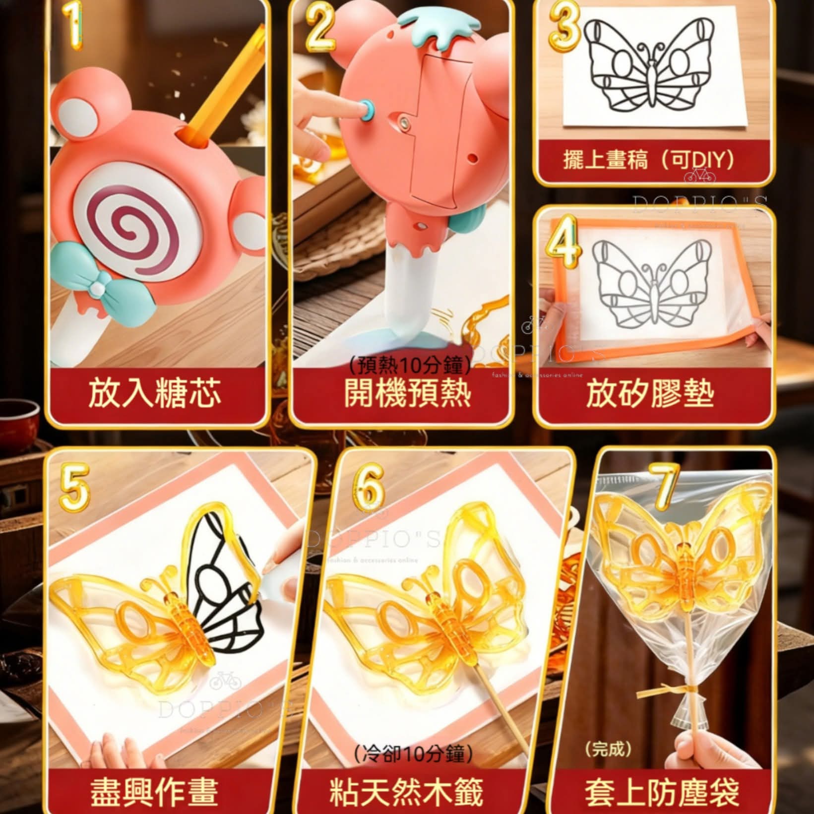 🍭【兒童無線畫糖筆套裝|🍭 甜蜜登場💗讓小朋友邊畫邊食!創意手作+甜品樂趣一次滿足✨ $1O5盒。2盒起$95盒。 🎨 產品特色: 💡免插電設計:無線操作更安全,使用方便自由畫~ 🍬可食用糖漿筆芯:食品級穀物發酵製成,健康美味,入口安心! 🖍️創意DIY手作:繪出獨一無二的糖畫造型,畫完即成糖果~ 🧁筆身糖果造型:粉嫩可愛,小朋友一見鍾情💖 🧩附16款不同圖紙:蝴蝶、獅子、獨角獸、小兔、飛機、龍、Kitty、花朵等超可愛圖案 🍭附20個防塵袋:可製作成20枝小糖,乾淨衛生、方便保存 👜外出可攜式設計:假日親子活動、生日派對都啱玩! 👧 適用年齡: 3歲以上 📏 尺寸: 14 × 8.5 × 21cm 🧡 材質安全: 食品級原料,無毒無異味 🌟 甜蜜樂趣・親子時光 自己動手畫出蝴蝶🦋、小熊🐻、獨角獸🦄 甜甜糖畫,邊畫邊食~充滿創意與幸福感💝 #兒童畫糖筆 #親子DIY #食品級安全 #可食糖畫 #兒童手作玩具 #生日禮物推薦 #無線畫糖筆