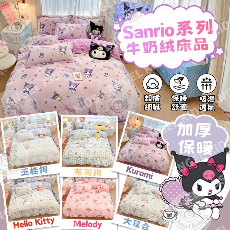 💗 Sanrio 系列牛奶絨床品套裝|可愛登場!2套起各减$ 1 0。