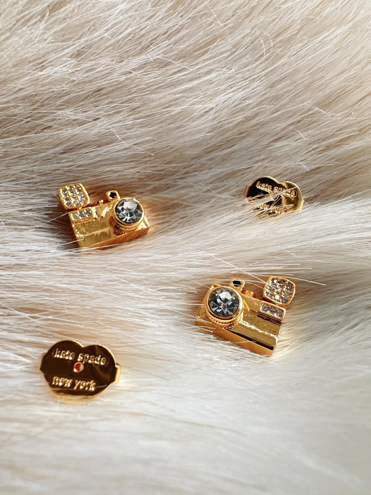 2件起各减$ 10。Kate Spade小相機系列耳環$88 / 頸鏈$108