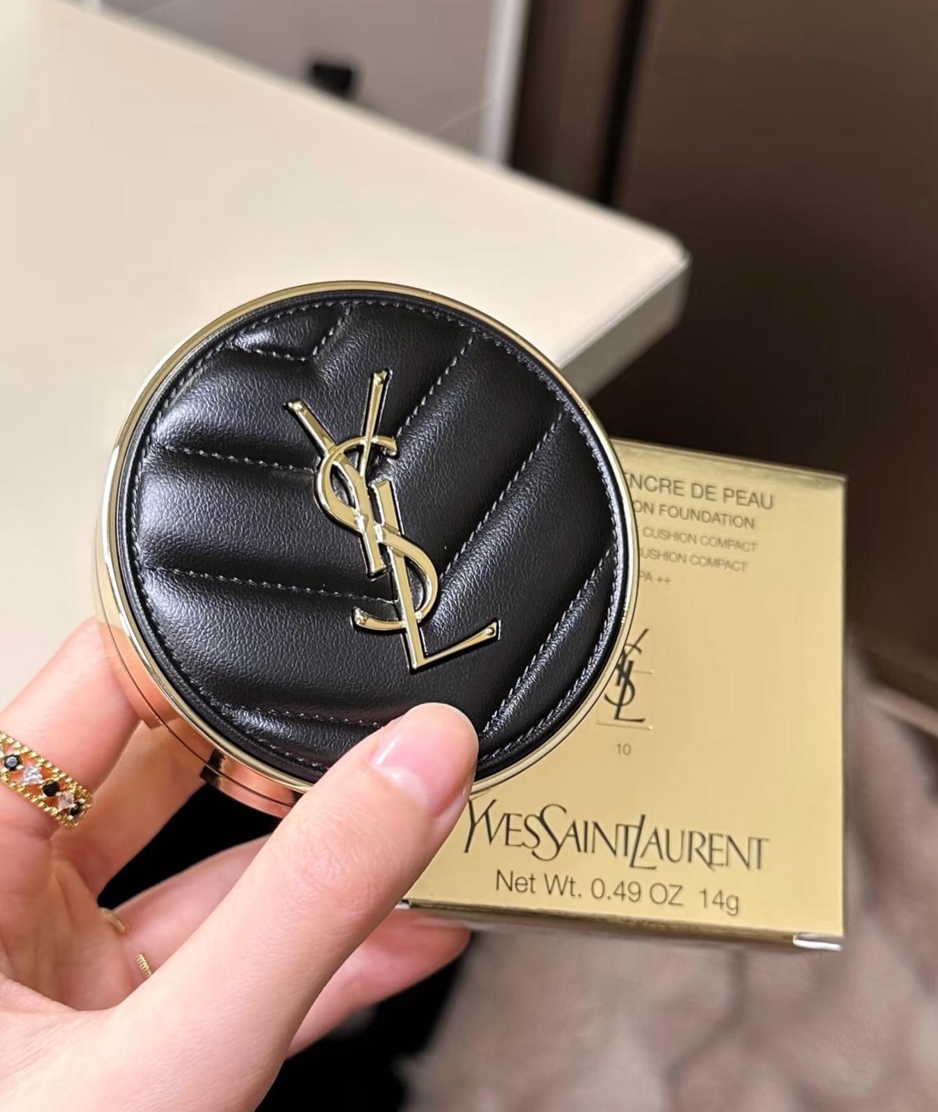 2件起各减$10。 【專櫃】新版YSL聖羅蘭皮革氣墊新版 【防曬度23】黑氣墊 原價$670 #10 $365 #20 $350 貨期7-10日💙 【專櫃】新版YSL聖羅蘭皮革氣墊新版 【防曬度23】黑氣墊 以YSL相機包為靈感的V型紋壓印皮革墨水氣墊,黃銅logo與皮質搭配更顯高級,並且比舊款更加持久保濕遮暇效果更好!!