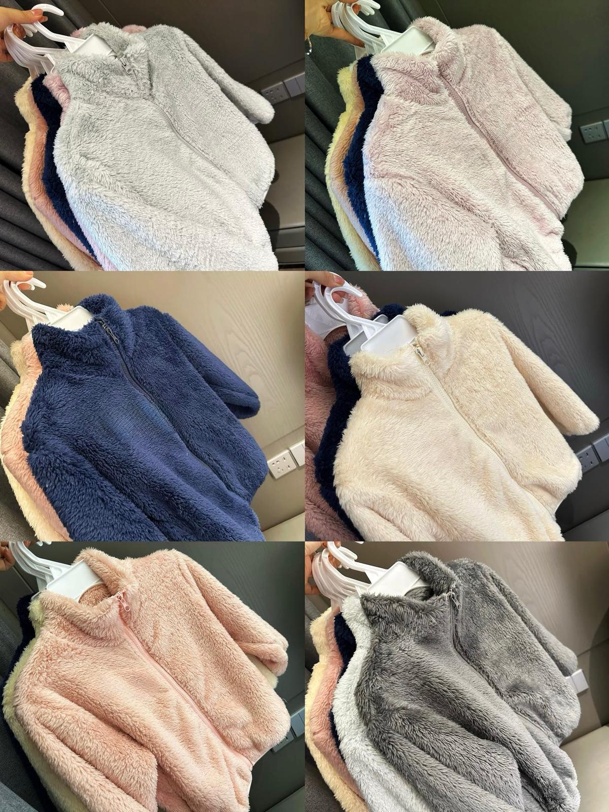 2件起各減$5。 廠單UQ同款毛絨絨外套 截單日期:長訂 逢星期一11am / 售完即止 預計到貨日:3-6星期 💜淡紫 🩵天藍 🩶灰色 🩷粉色 🤍米白 💙深藍 👧🏻小童$75 Size 100 110 120 130 140 150 160 衣長 41 44 47 50 53 56 59 胸圍 40 42 44 46 48 50 52 袖長 40.5 44 47.5 51 54.5 58 61 👩🏻成人$85 Size 衣長 胸圍 袖長 M 61 100 66 L 64 104 70 XL 67 108 74
