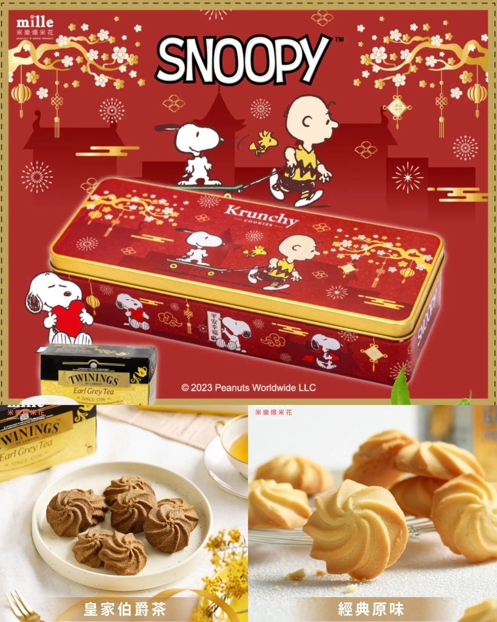 台灣Millar米樂爆米花-曲奇餅史努比紅走春罐
